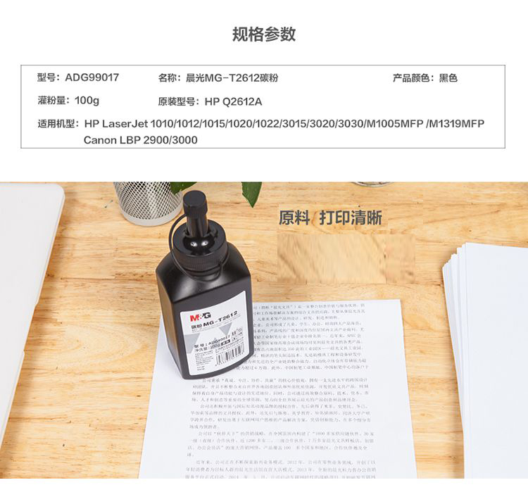 晨光(M&G)T2612碳粉3瓶 黑色碳粉墨粉 办公用品 打印耗材 适用于惠普1010/1020/1022等打印机 黑色