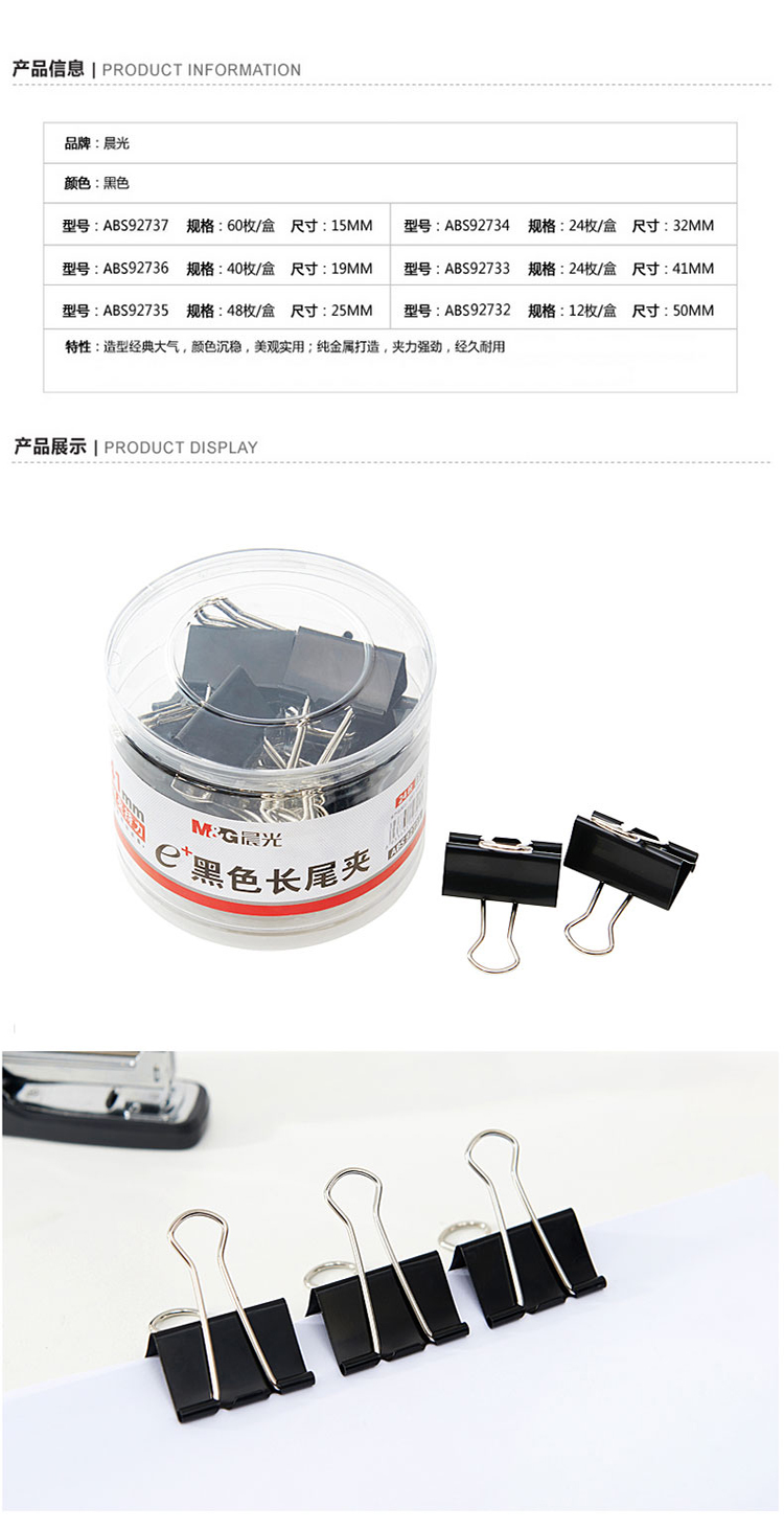 晨光(M&G)ABS92732 长尾夹2筒12只/筒燕尾夹蝴蝶夹凤尾夹金属票据夹试卷夹长尾夹/白钢夹/票夹
