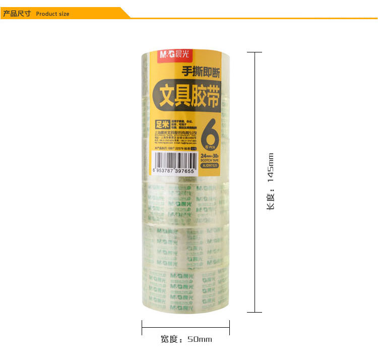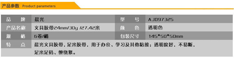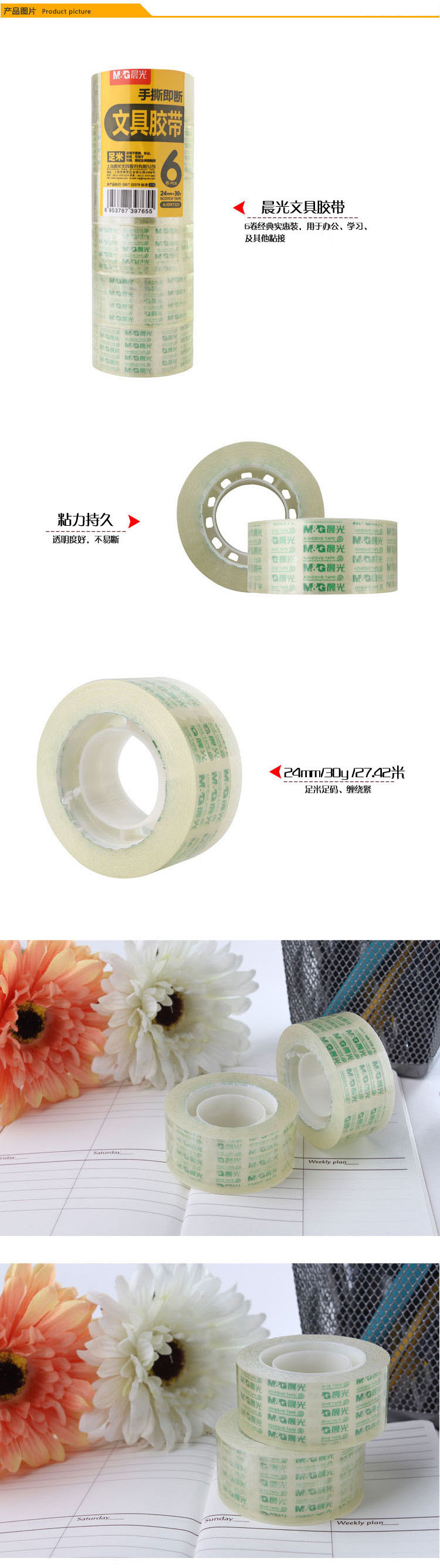 晨光(M&G)AJD97325透明胶带6卷/筒 24mm*30y 小胶带 胶布胶纸 封箱器胶带 胶卷