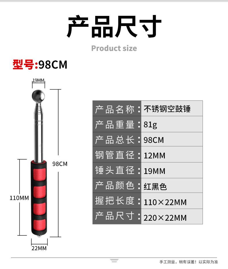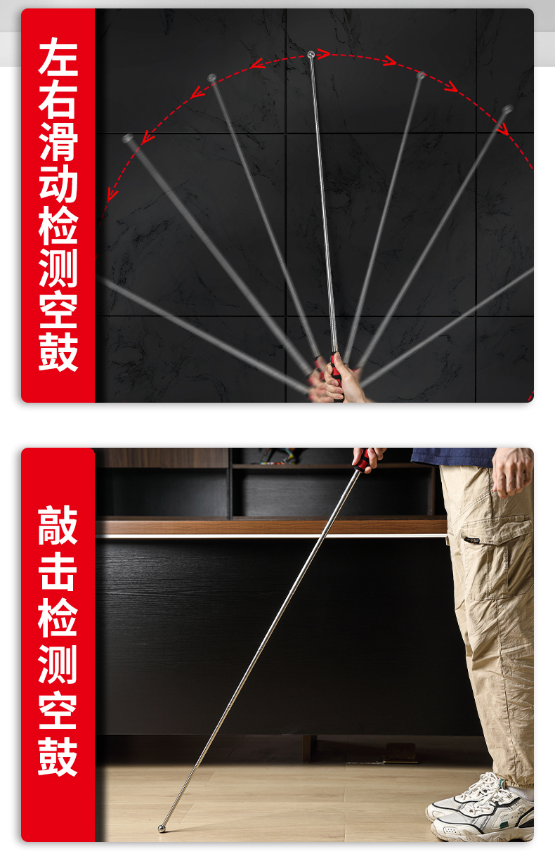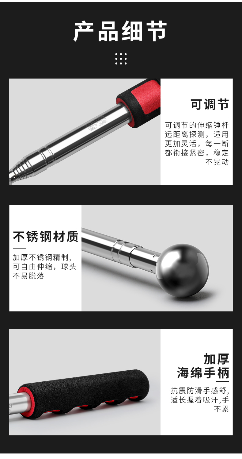 德力西工具空鼓锤验房套装加厚加粗敲瓷砖空鼓响鼓专业检测验收棒 160cm抗震护手超长款