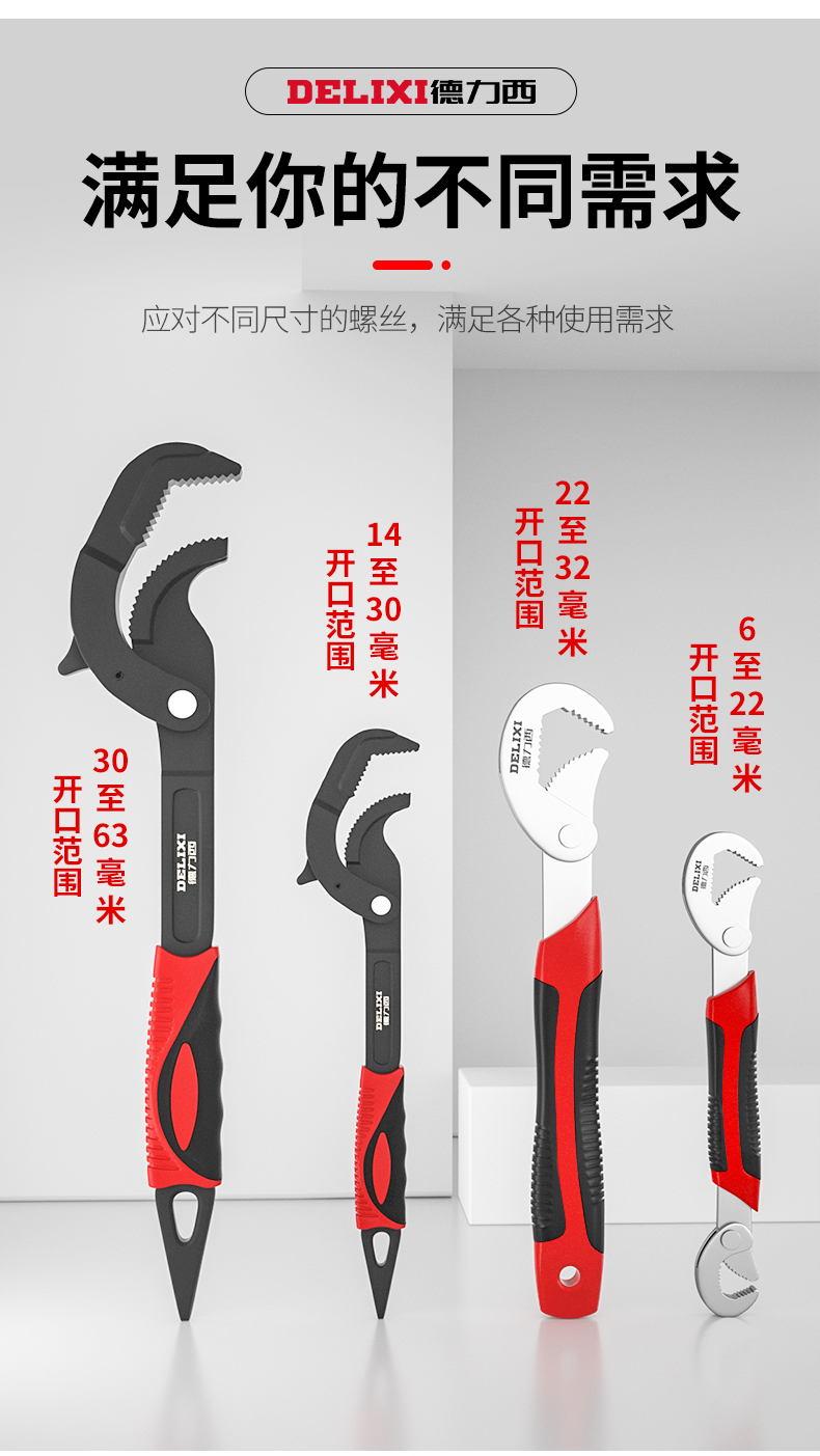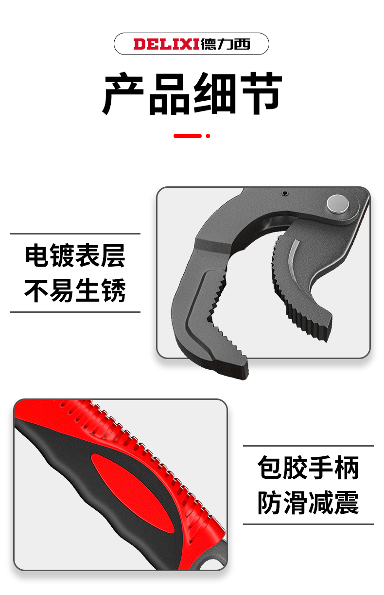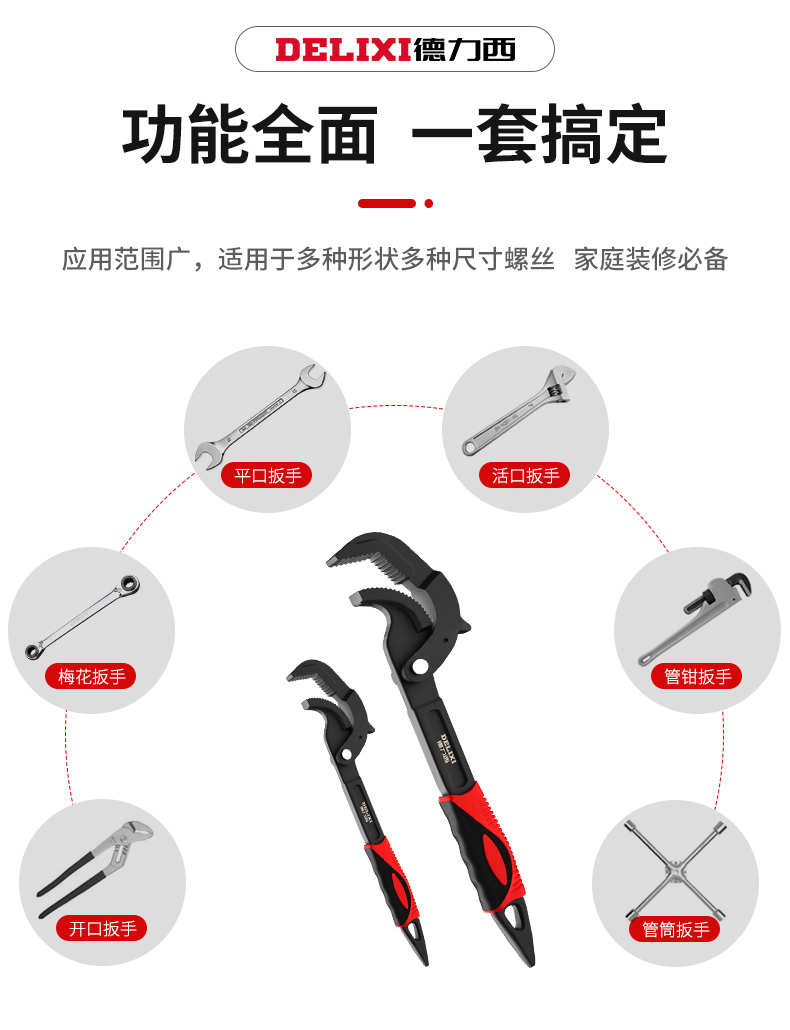 德力西万能扳手活动开口扳手万用管钳多功能快速扳子万能扳手工具 万能扳手大号单只