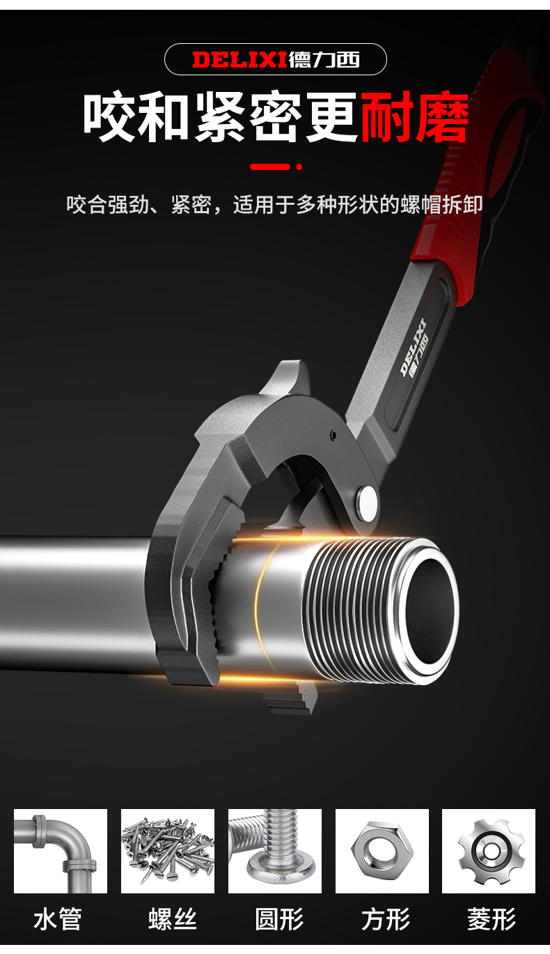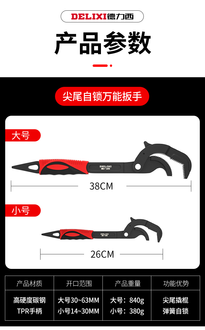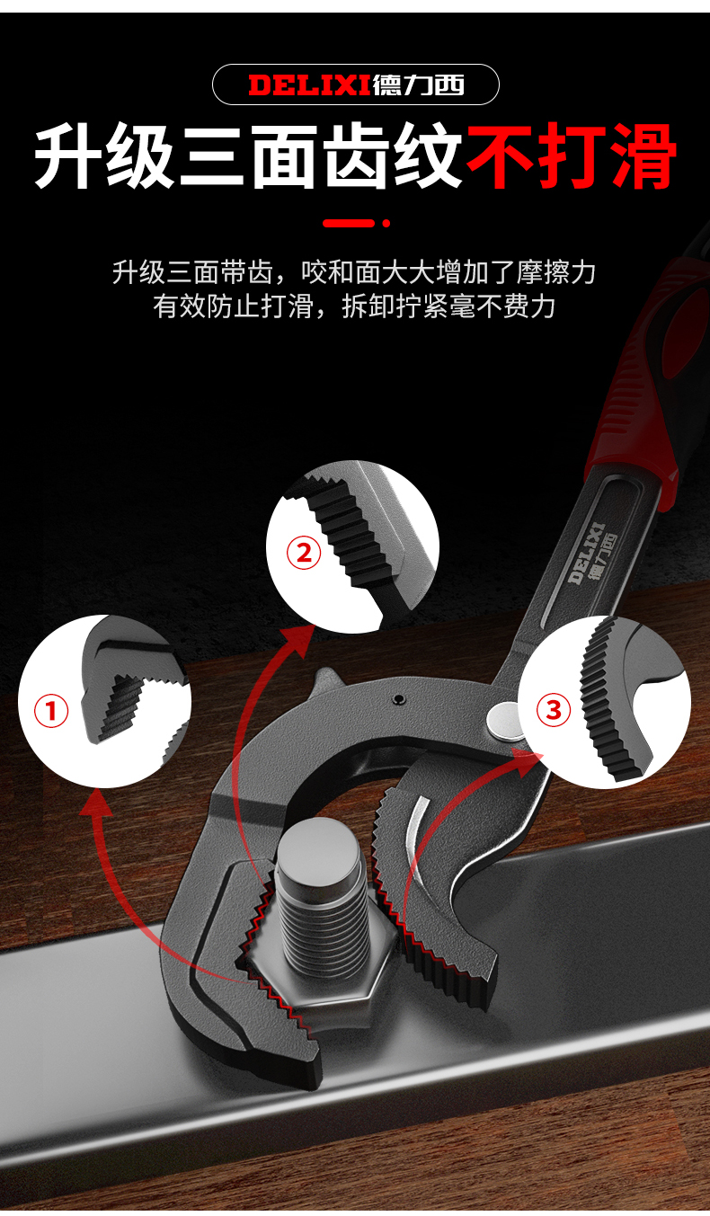 德力西万能扳手活动开口扳手万用管钳多功能快速扳子万能扳手工具 万能扳手自锁型大号单只
