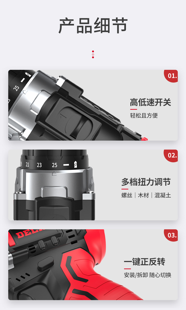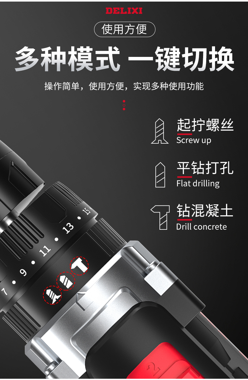 德力西大功率充电冲击锂电钻手持钻多功能家用电动螺丝刀工具套装 16.8v冲击双速塑盒二电一充/豪华礼包