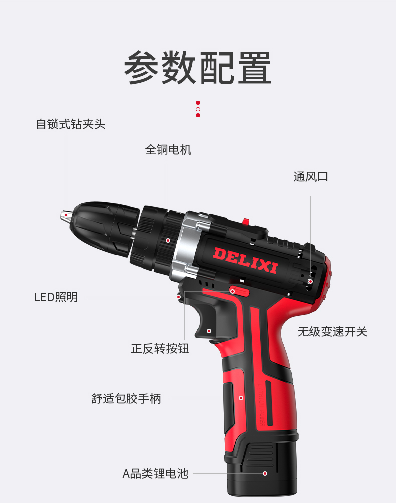 德力西大功率充电冲击锂电钻手持钻多功能家用电动螺丝刀工具套装 25.v冲击双速塑盒一电一充/豪华礼包