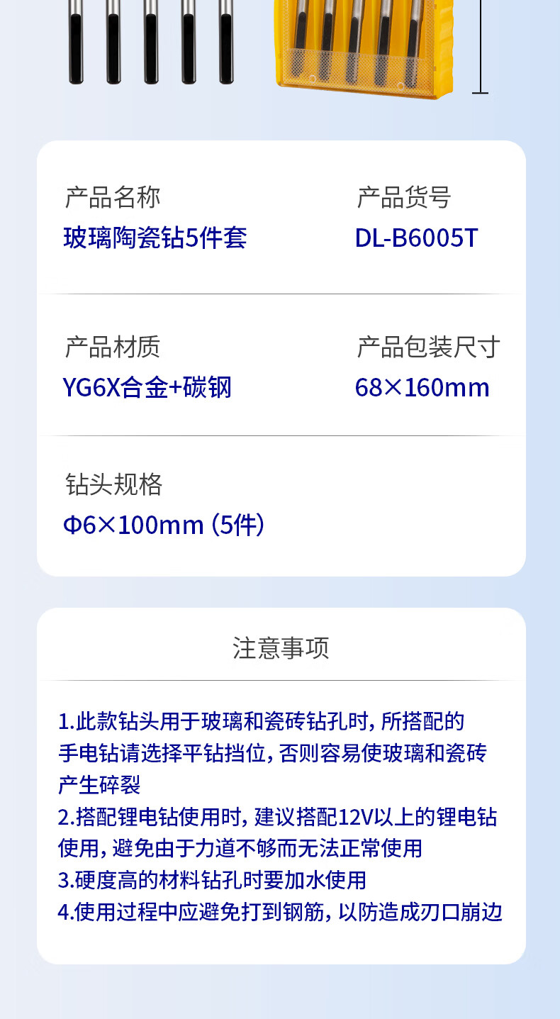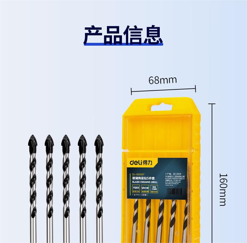得力(deli)玻璃陶瓷瓷砖钻头套装 打孔专用手电钻开孔器 5件套6mm*5个银黑色(DL-B6005T)2盒/件 1件