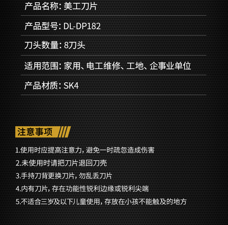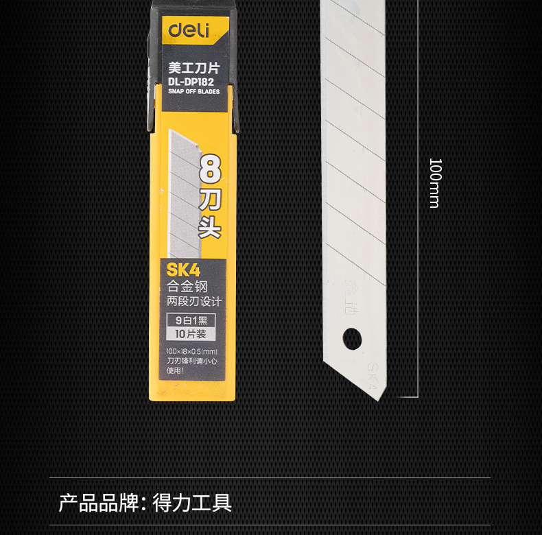 得力(deli)DL-DP182 SK4美工刀片 替换壁纸裁纸刀片不易生锈 18mm8刀头9白1黑 5盒/件 1件