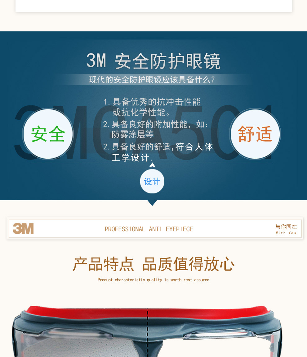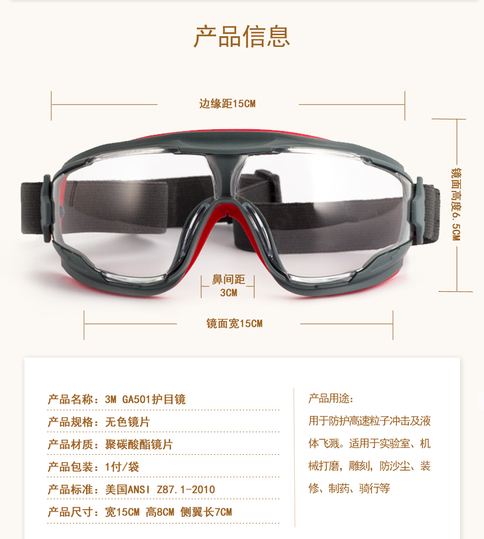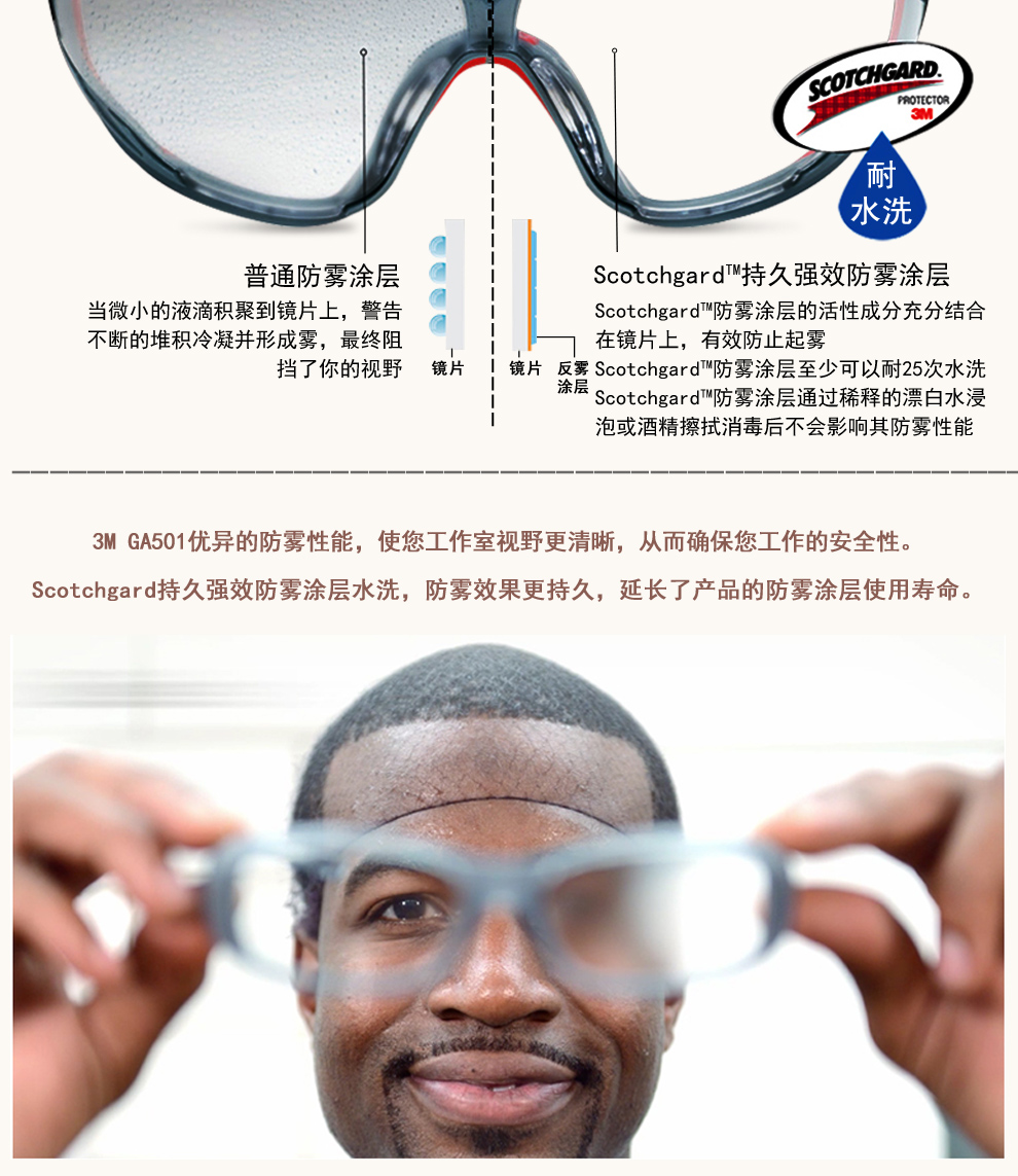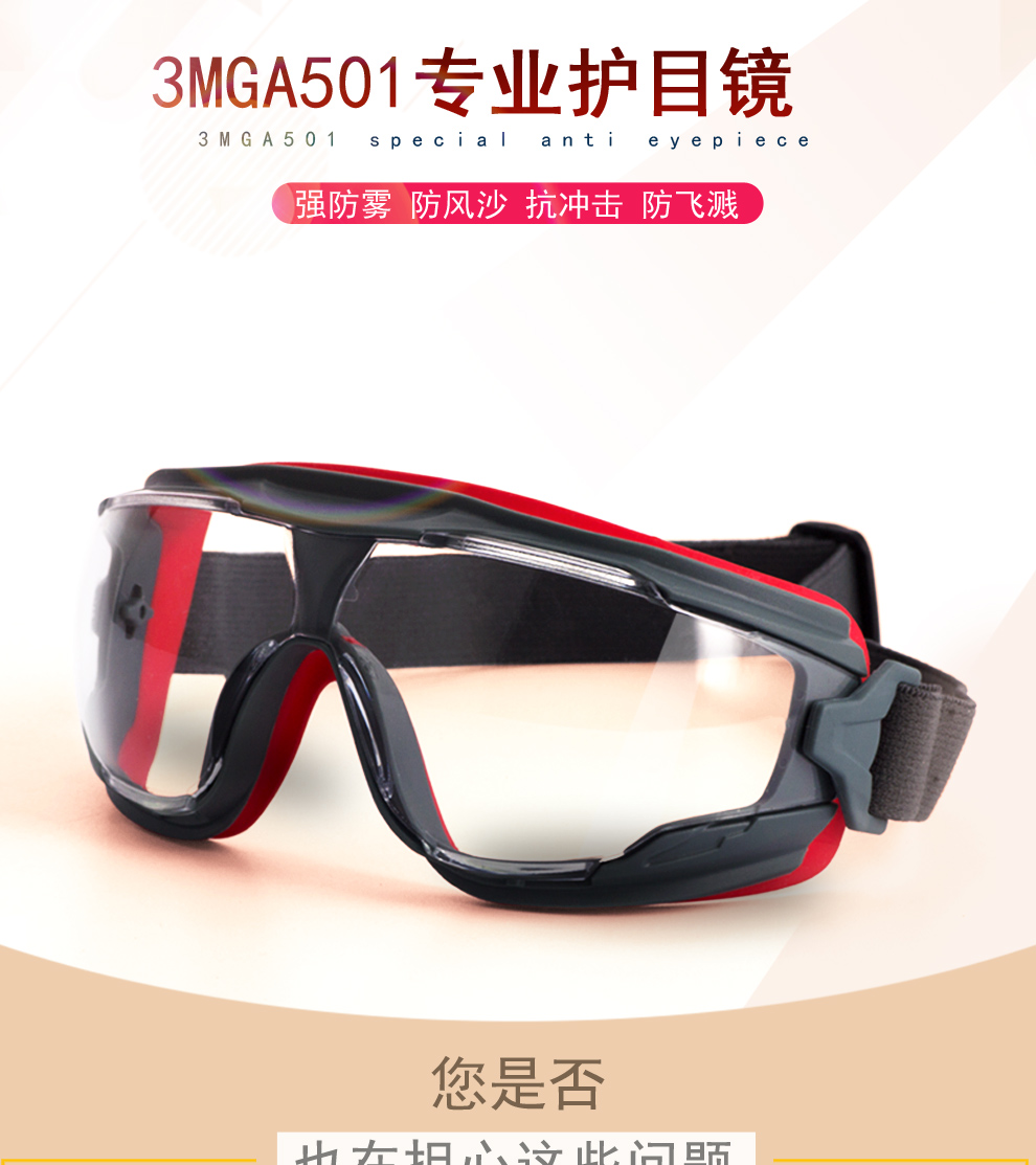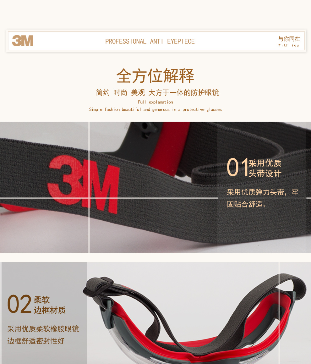 3M 防护眼镜 防冲击防化学品液体飞溅强防雾护目镜 默认颜色