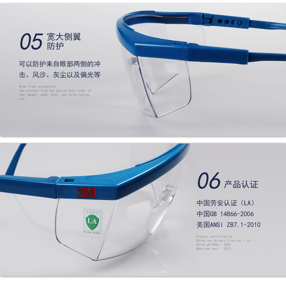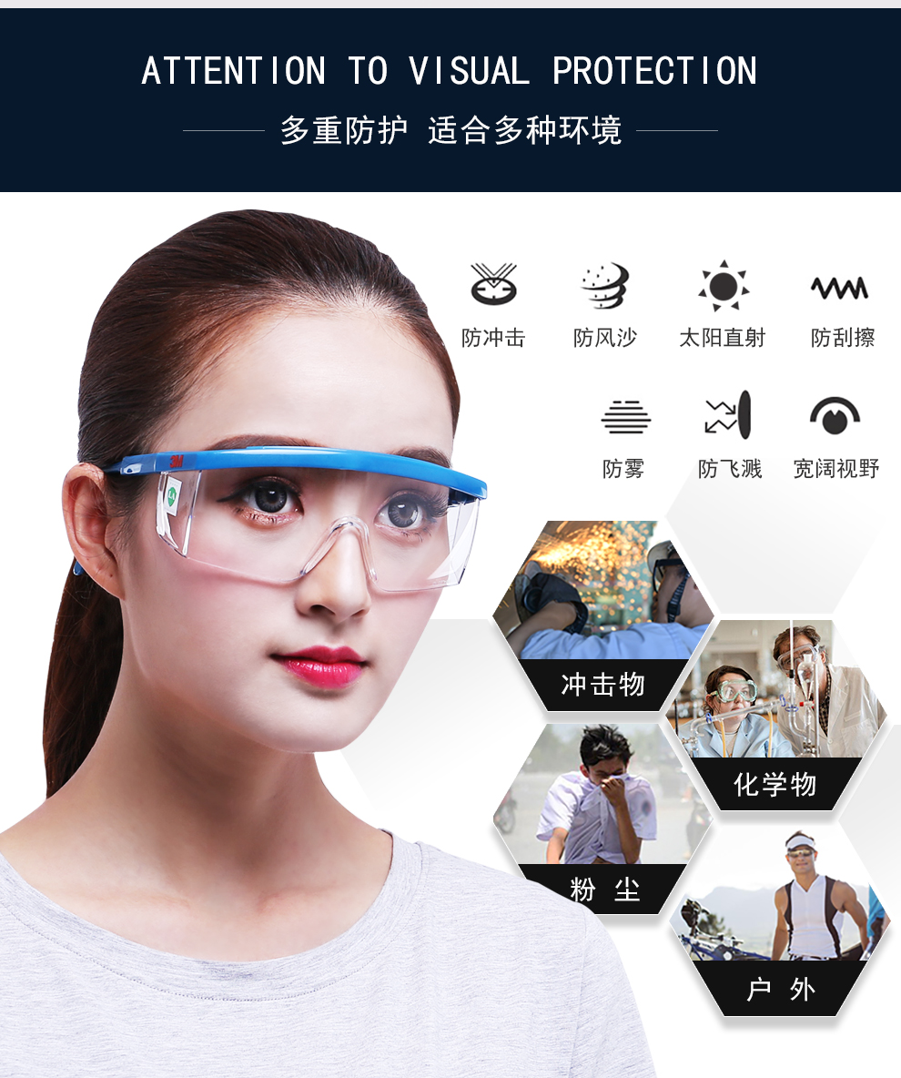 3M护目镜骑行防风沙工厂防护眼镜劳保装修防冲击防紫外线防雾飞沫实验室