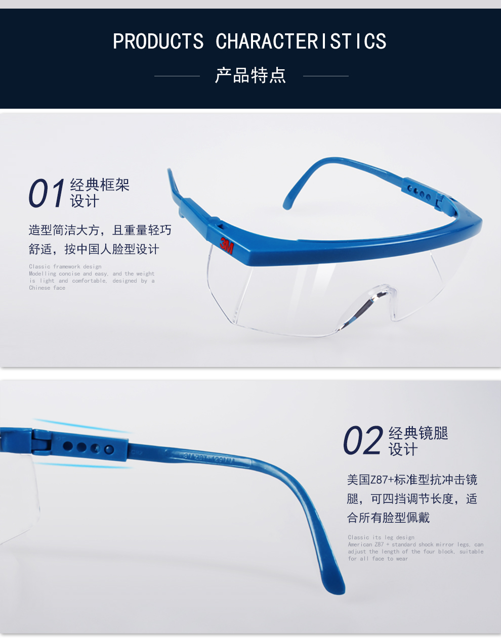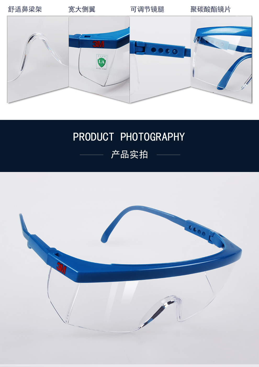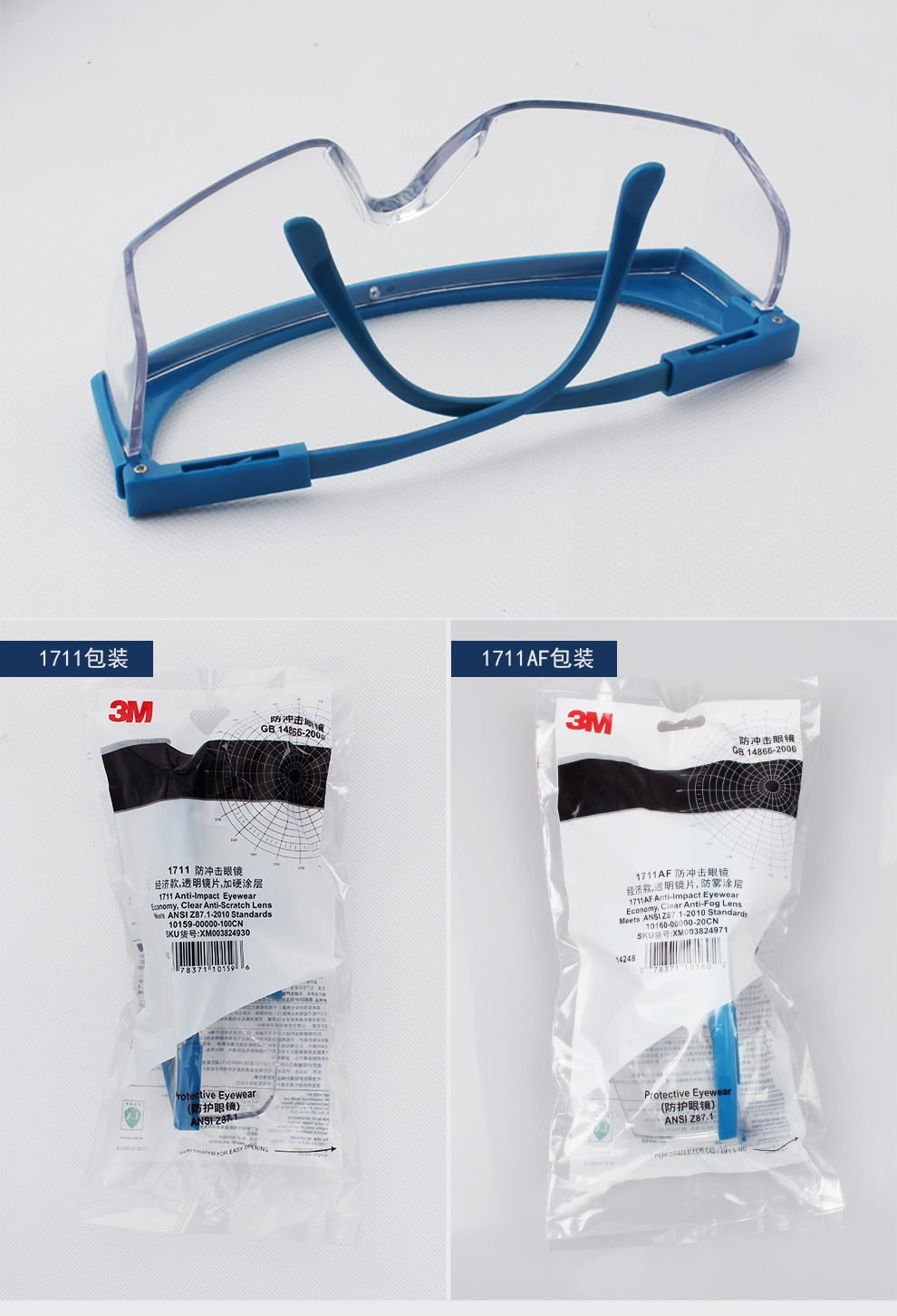 3M护目镜骑行防风沙工厂防护眼镜劳保装修防冲击防紫外线防雾飞沫实验室 1711防刮型眼镜