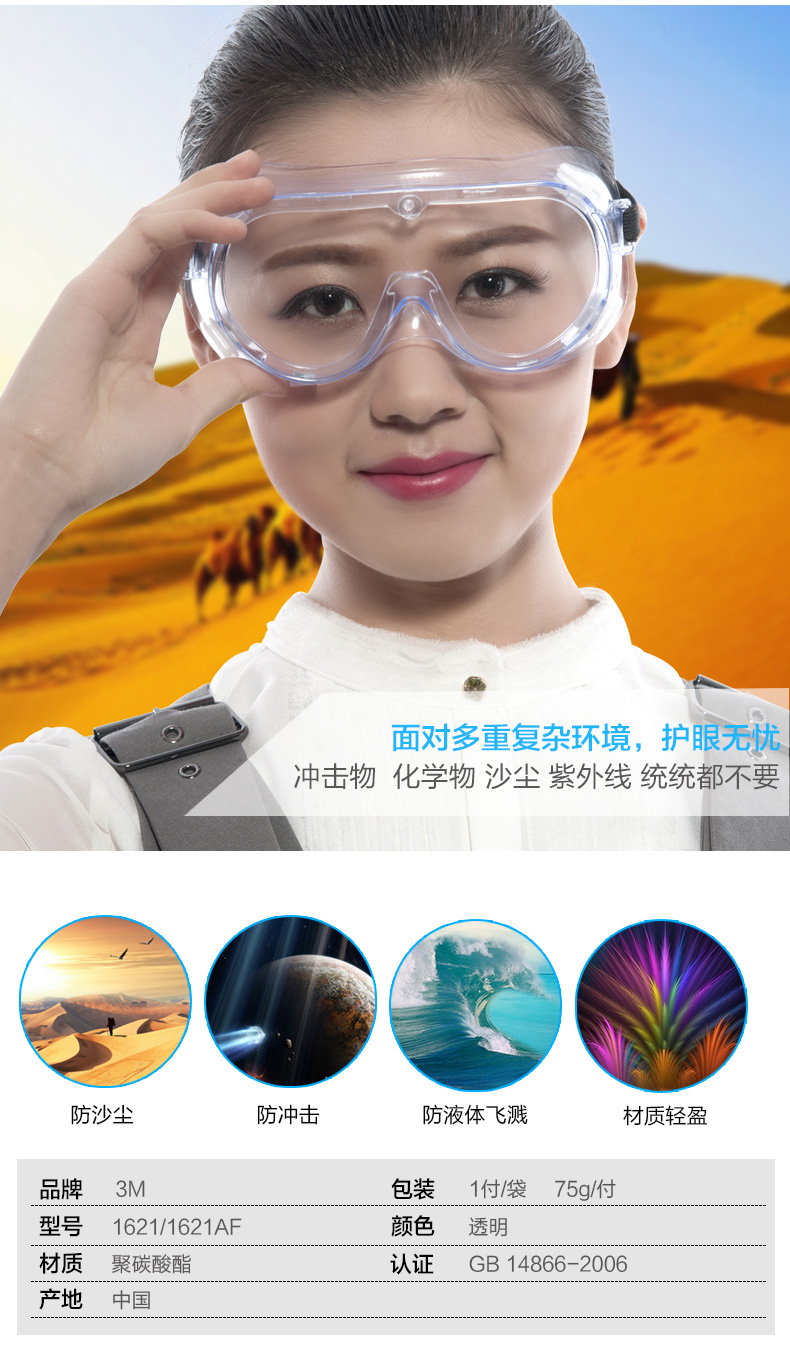 3M眼罩1621防化学护目镜眼罩防液体飞溅防冲击 1621不防雾