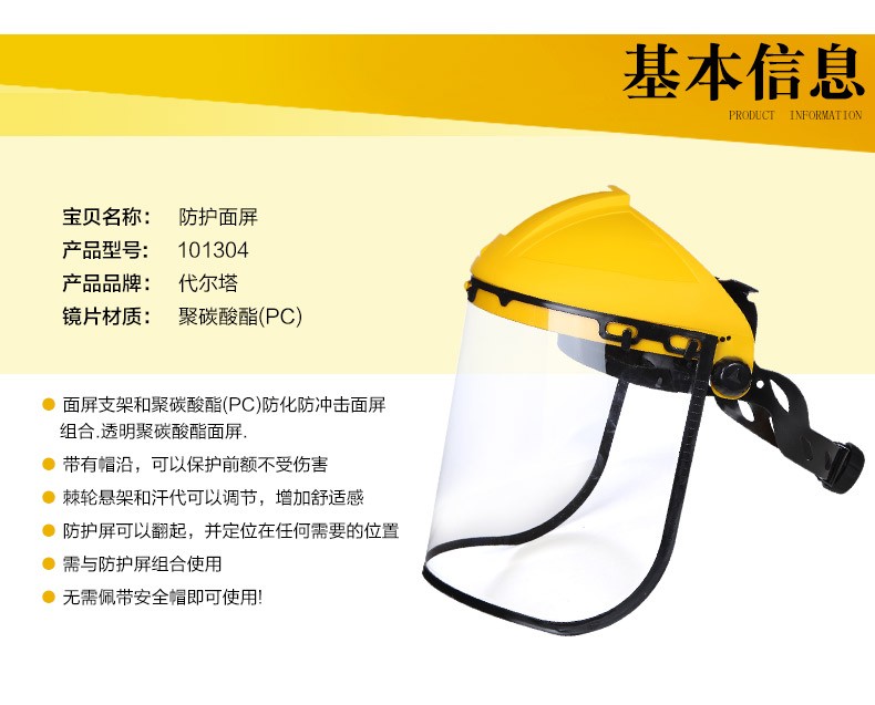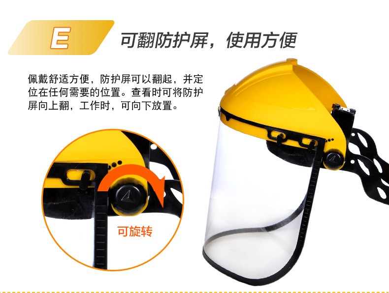 代尔塔101304头戴式安全帽式电焊面罩烧焊工防护面屏防飞溅打磨透明焊帽 默认尺寸