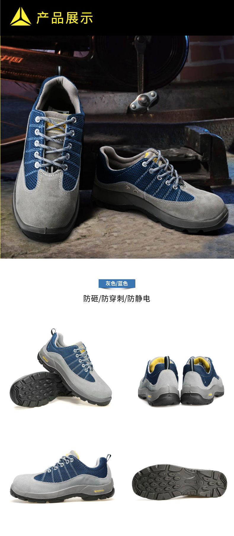 代尔塔301322劳保鞋安全鞋防砸防穿刺防静电钢包头工作鞋透气牛皮 米灰色款