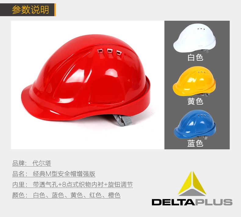 代尔塔102106安全帽ABS透气款建筑工地工程施工透气防砸高空作业 蓝色