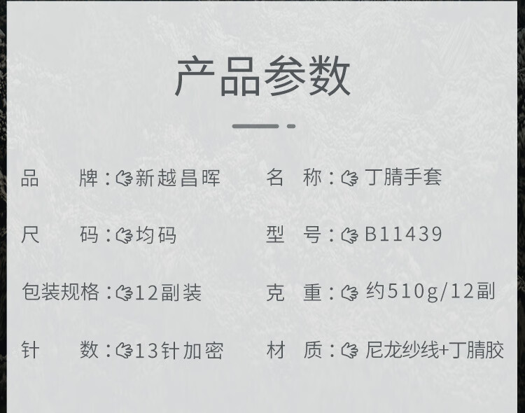 新越昌晖浸胶皱纹手套 涂掌涂层丁腈手套 劳保手套 防滑耐磨透气防护工地工作劳动干活手套12副/均码B11439