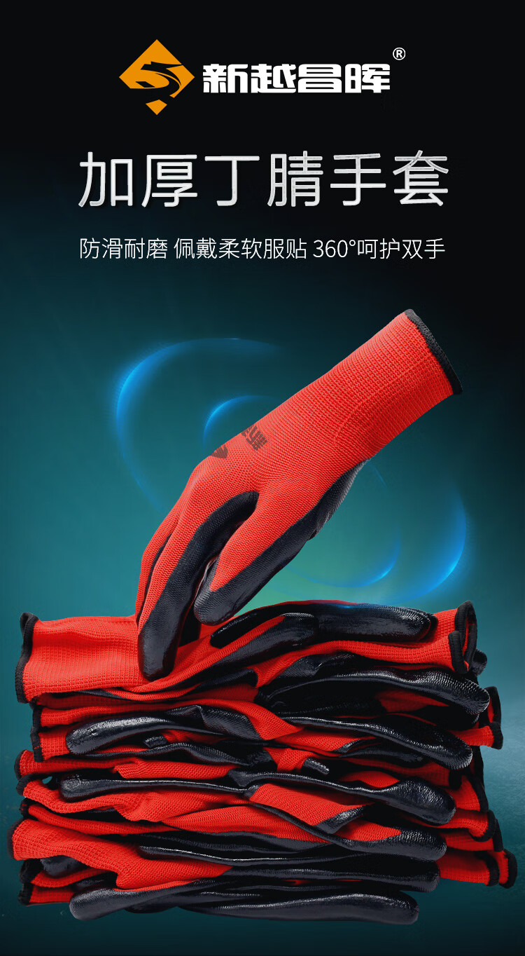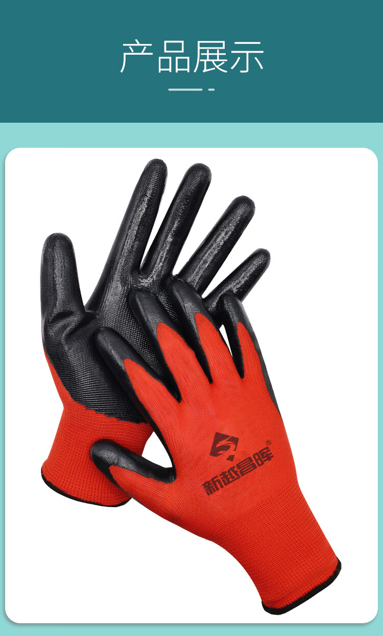新越昌晖浸胶皱纹手套 涂掌涂层丁腈手套 劳保手套 防滑耐磨透气防护工地工作劳动干活手套36副/均码B11439