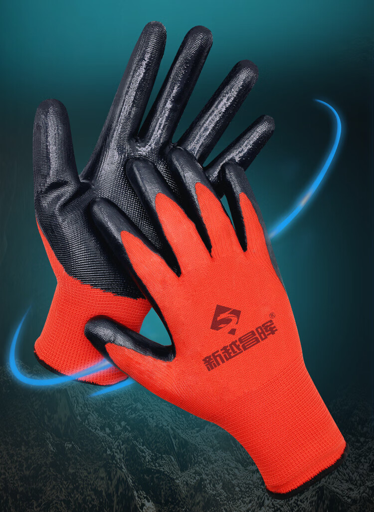 新越昌晖浸胶皱纹手套 涂掌涂层丁腈手套 劳保手套 防滑耐磨透气防护工地工作劳动干活手套120副/均码B11439