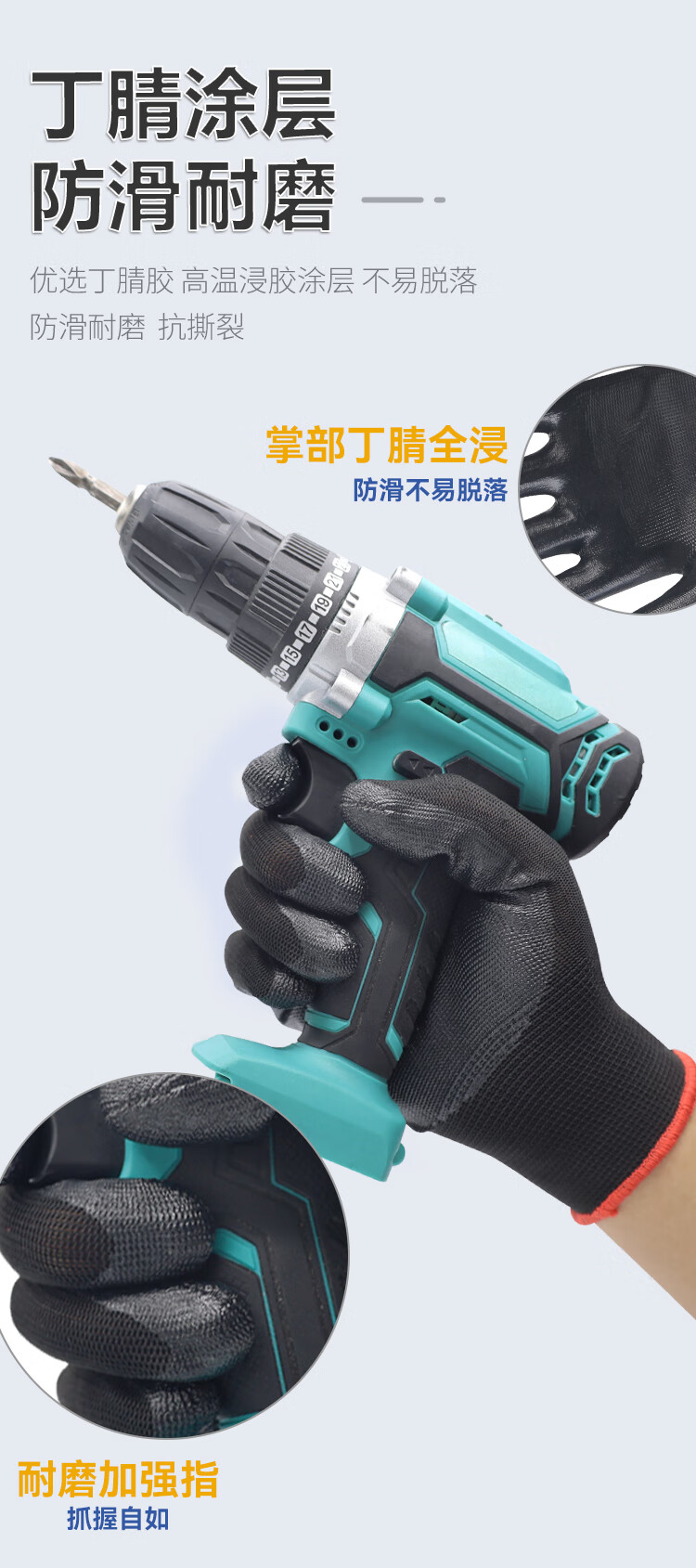 新越昌晖劳保手套 耐磨防滑丁腈手套涂掌挂胶尼龙手套防油透气防护工地工作手套12副B11423
