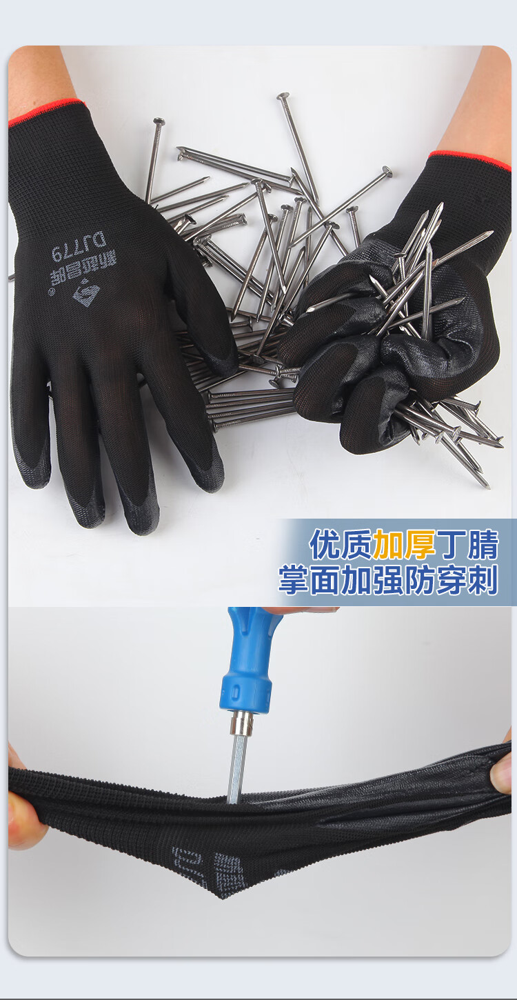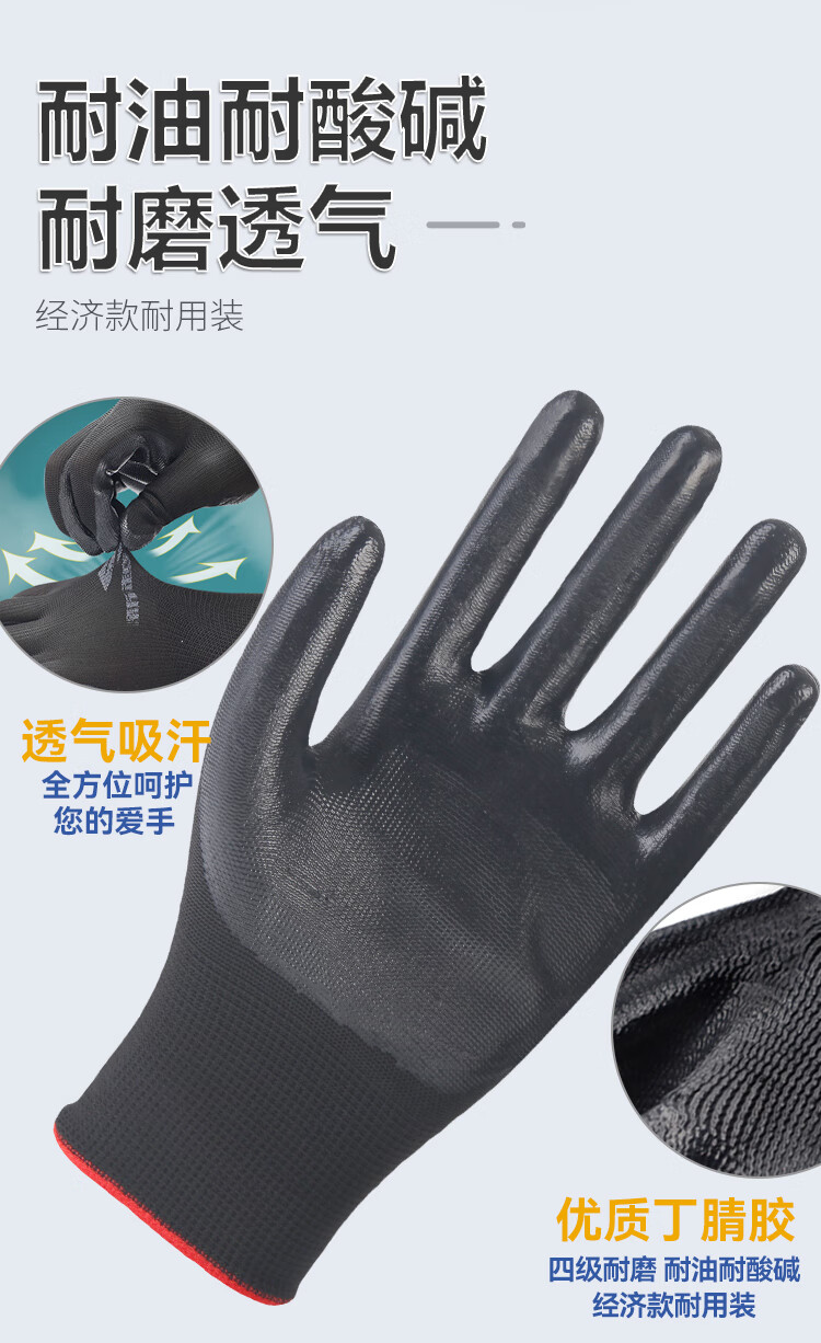 新越昌晖劳保手套 耐磨防滑丁腈手套涂掌挂胶尼龙手套防油透气防护工地工作手套120副B11439