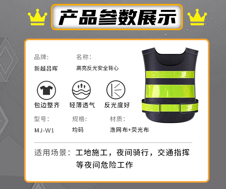新越昌晖反光马甲反光背心反光服加厚耐磨网格透气施工骑行交通执勤反光衣环卫作业反光安全警示工作服MJ-W2 橙色