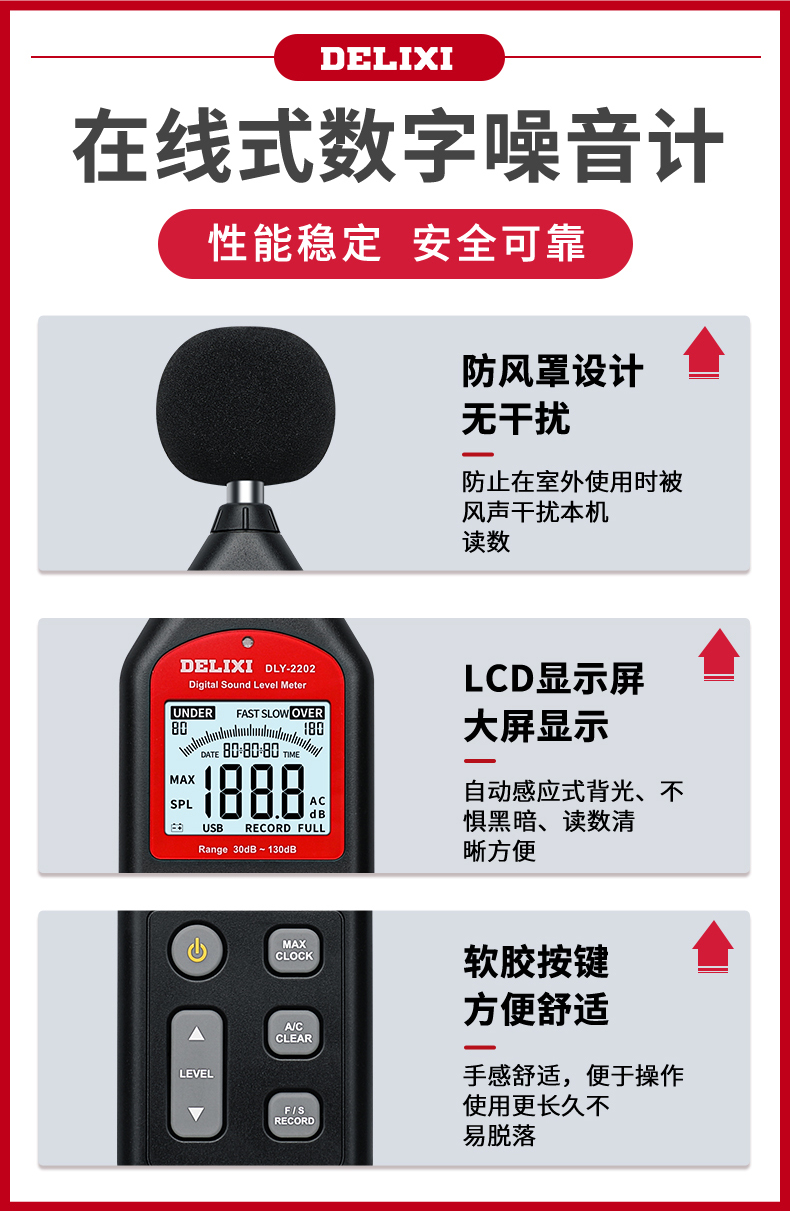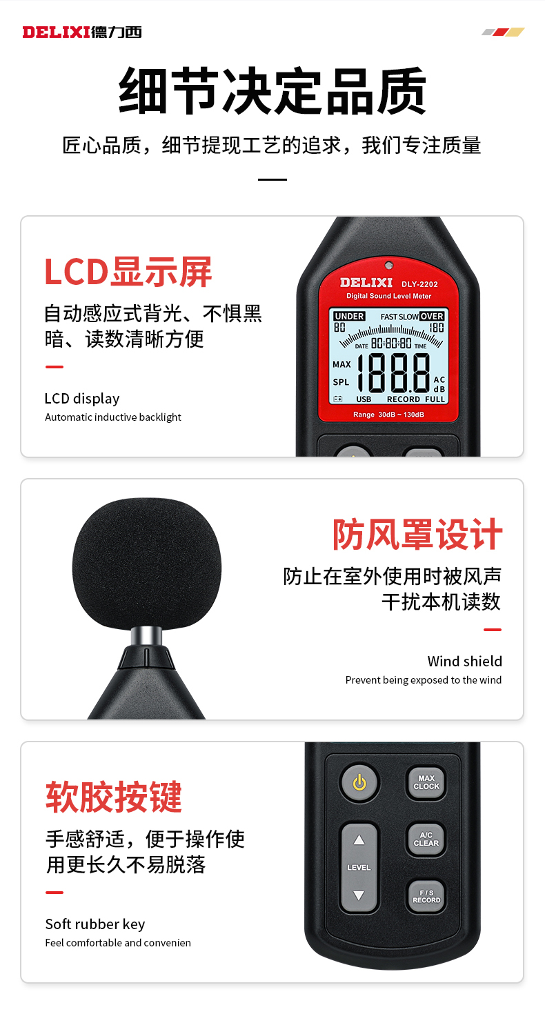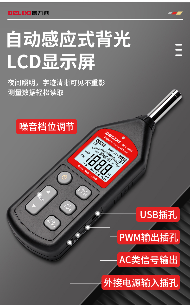 德力西噪音计噪音分贝测量仪家用小型噪音检测仪声音分贝测试 旗舰款