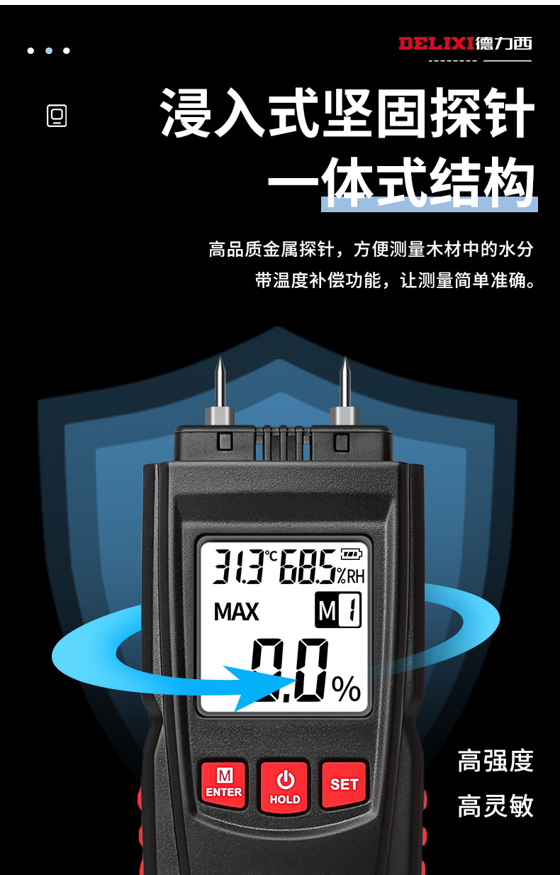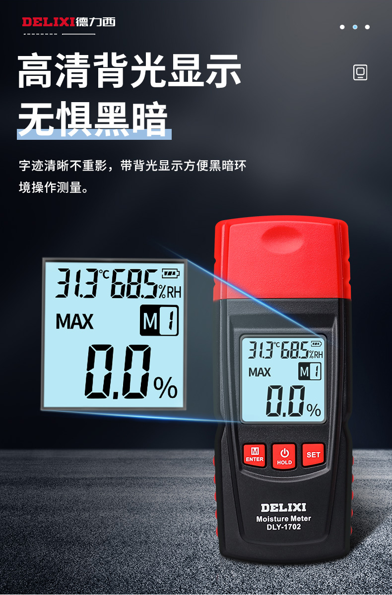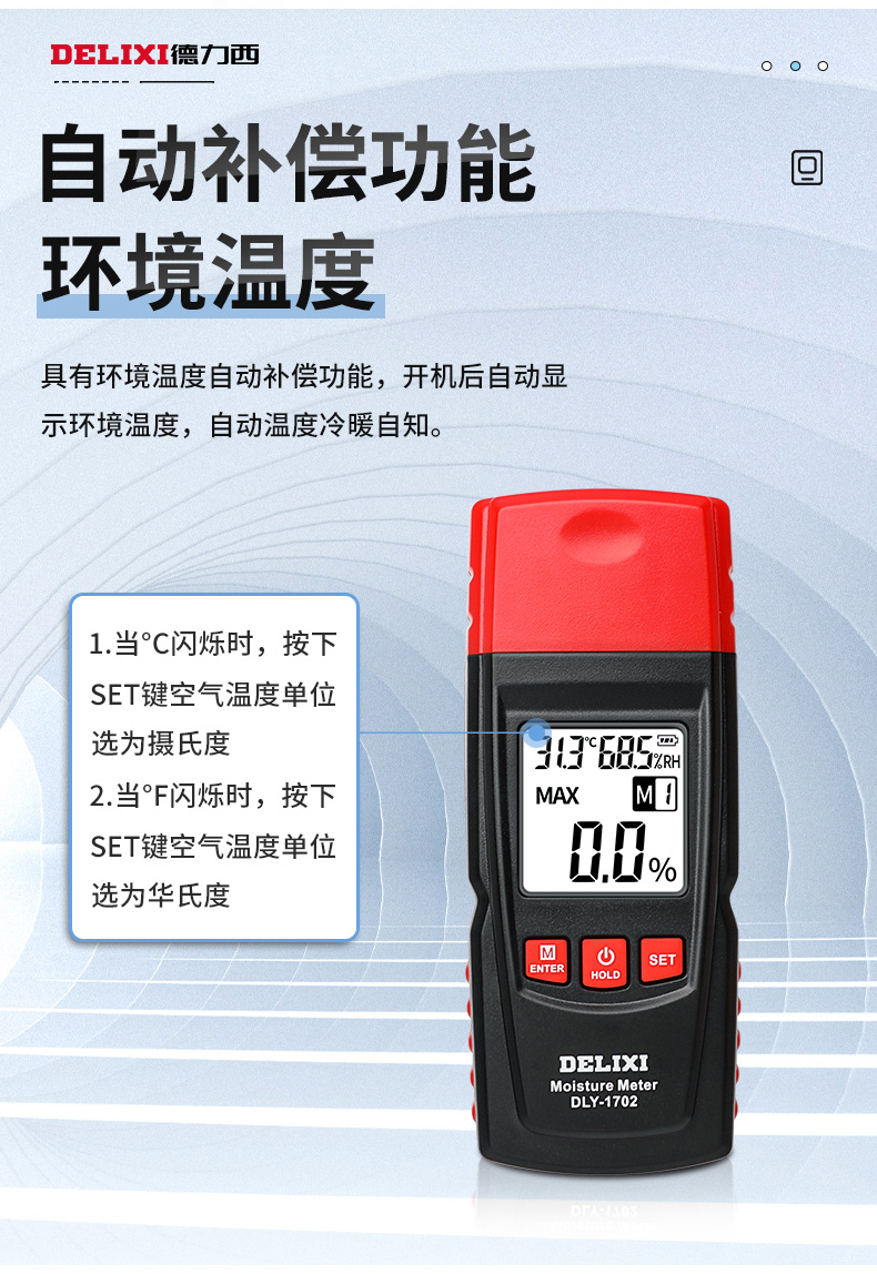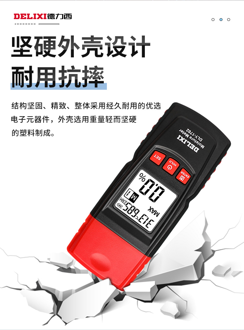 德力西水分仪测湿仪含水率测试仪墙体纸箱湿木材水份检测仪测量仪 1702温度自动补偿/精准测量