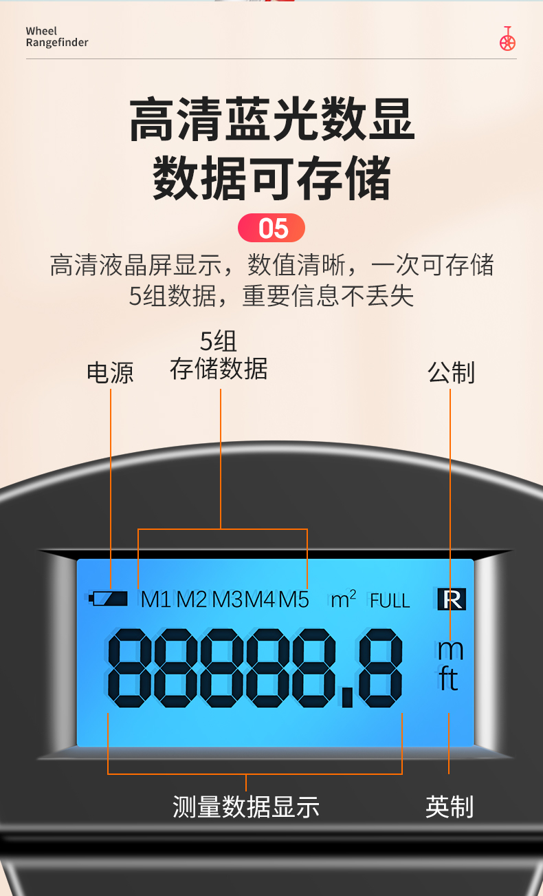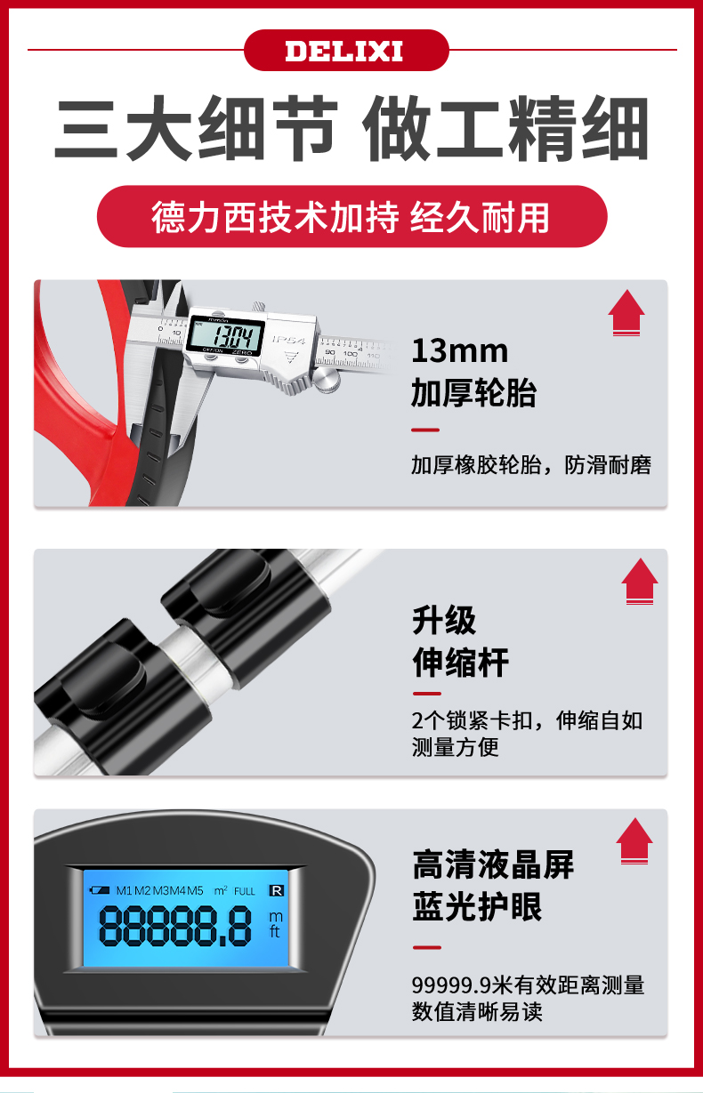 德力西手推滚轮式测距轮高精度户外电子数显测量距离量地尺测距仪 德力西-专业型数显小轮