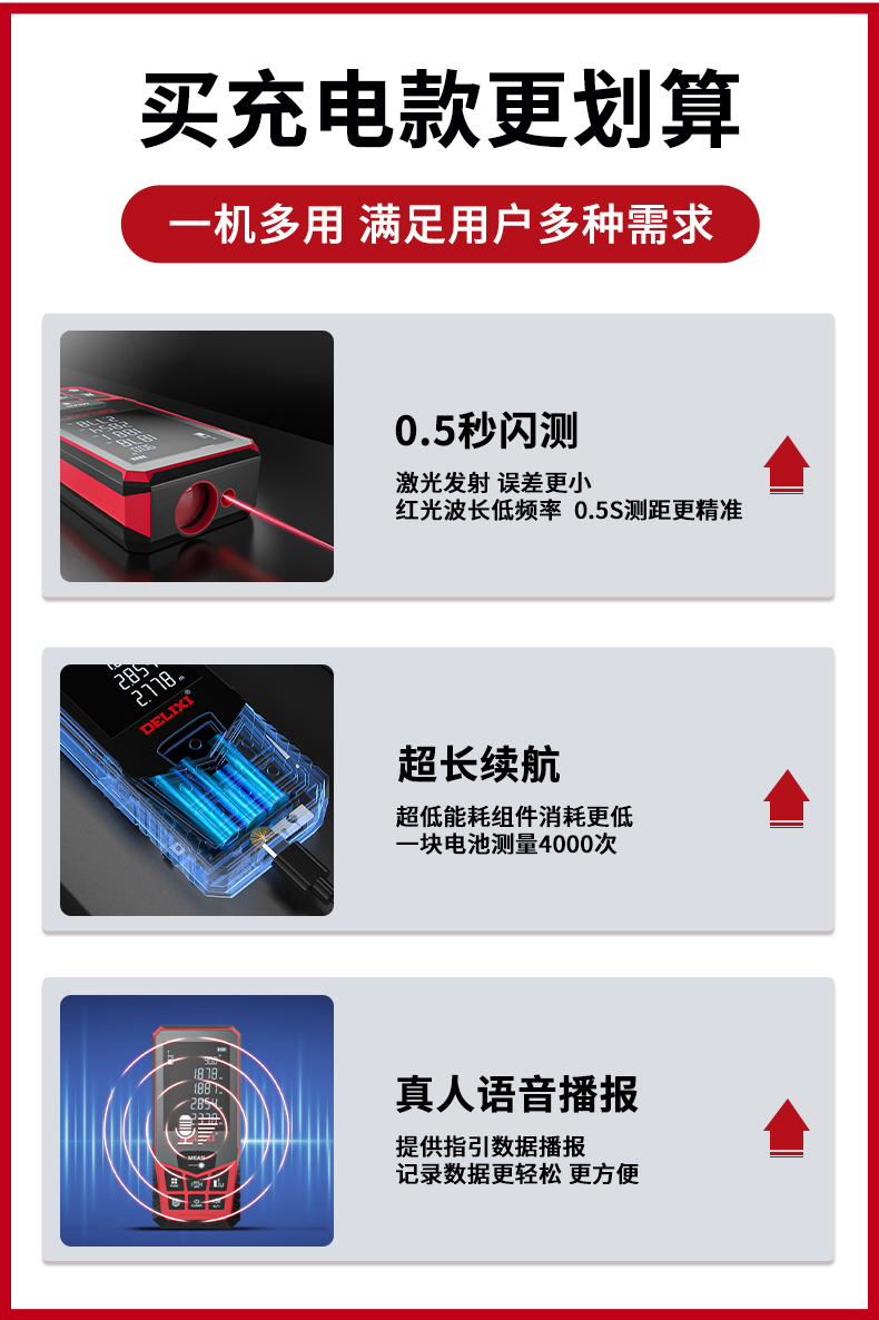 德力西激光测距仪高精度手持电子红外线测量尺测距离仪量房仪 【语音充电款】120米【USB直充】 通用型