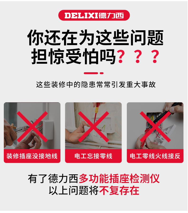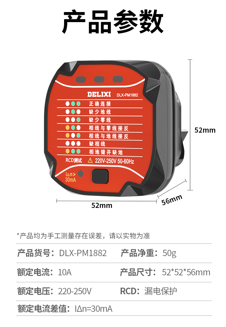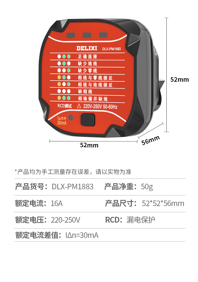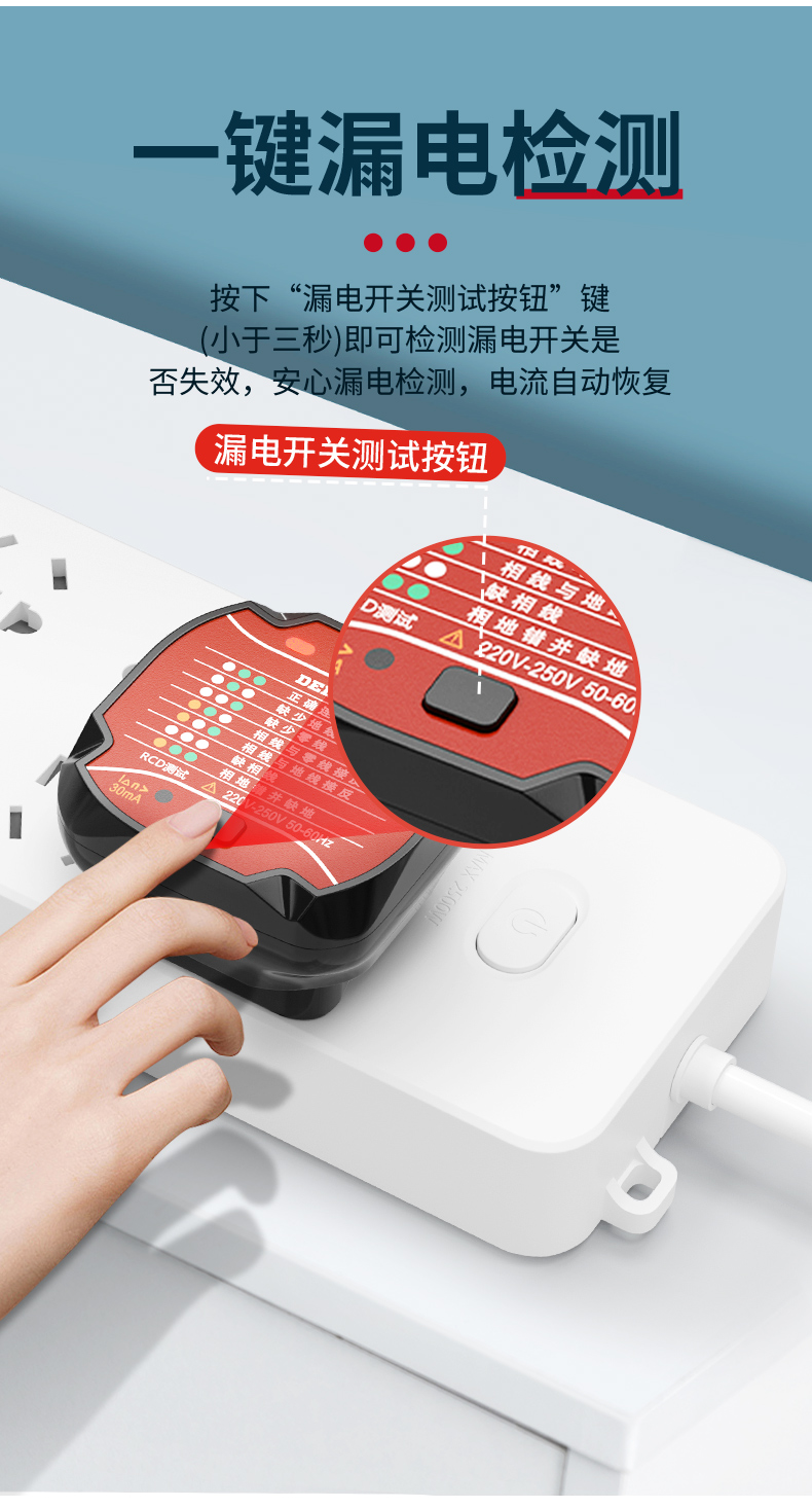 验电器插座测试仪相位检测仪插座检测器漏电插座验房工具电源插头 德力西电源极性检测器DLX-PM1882
