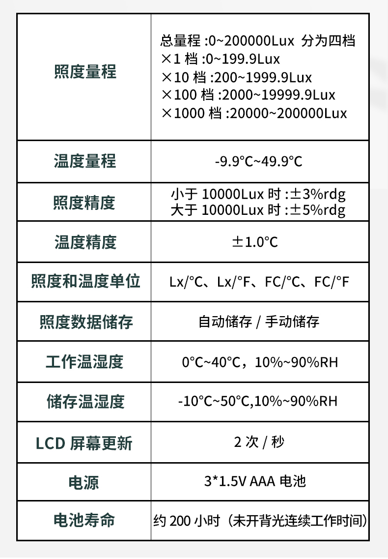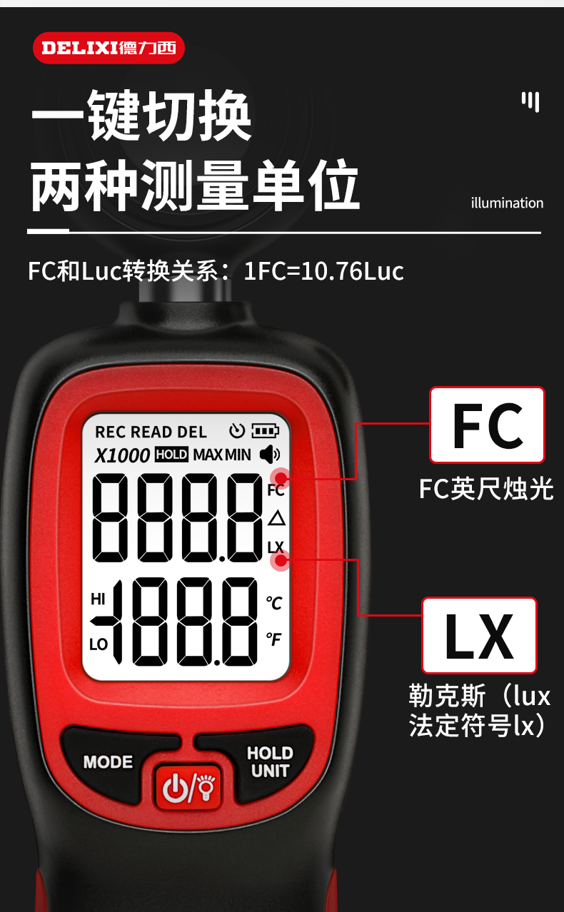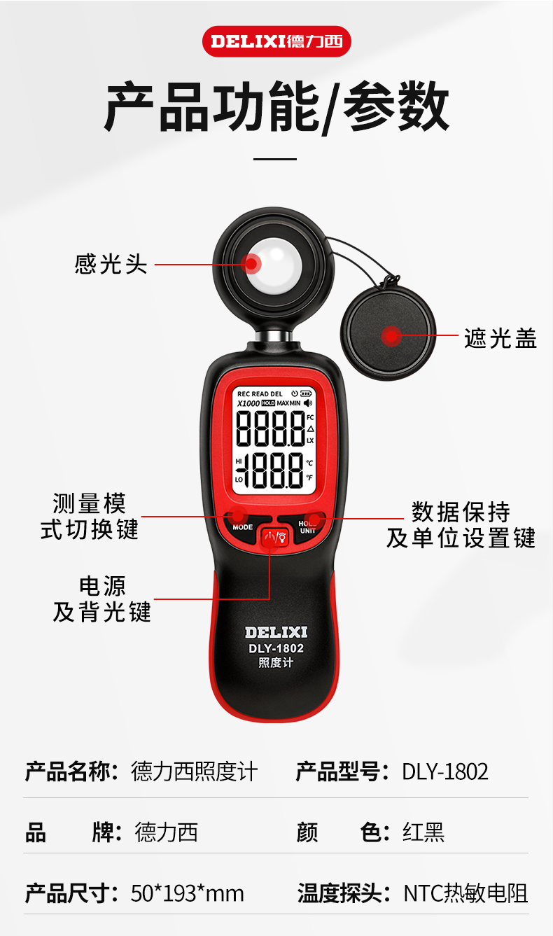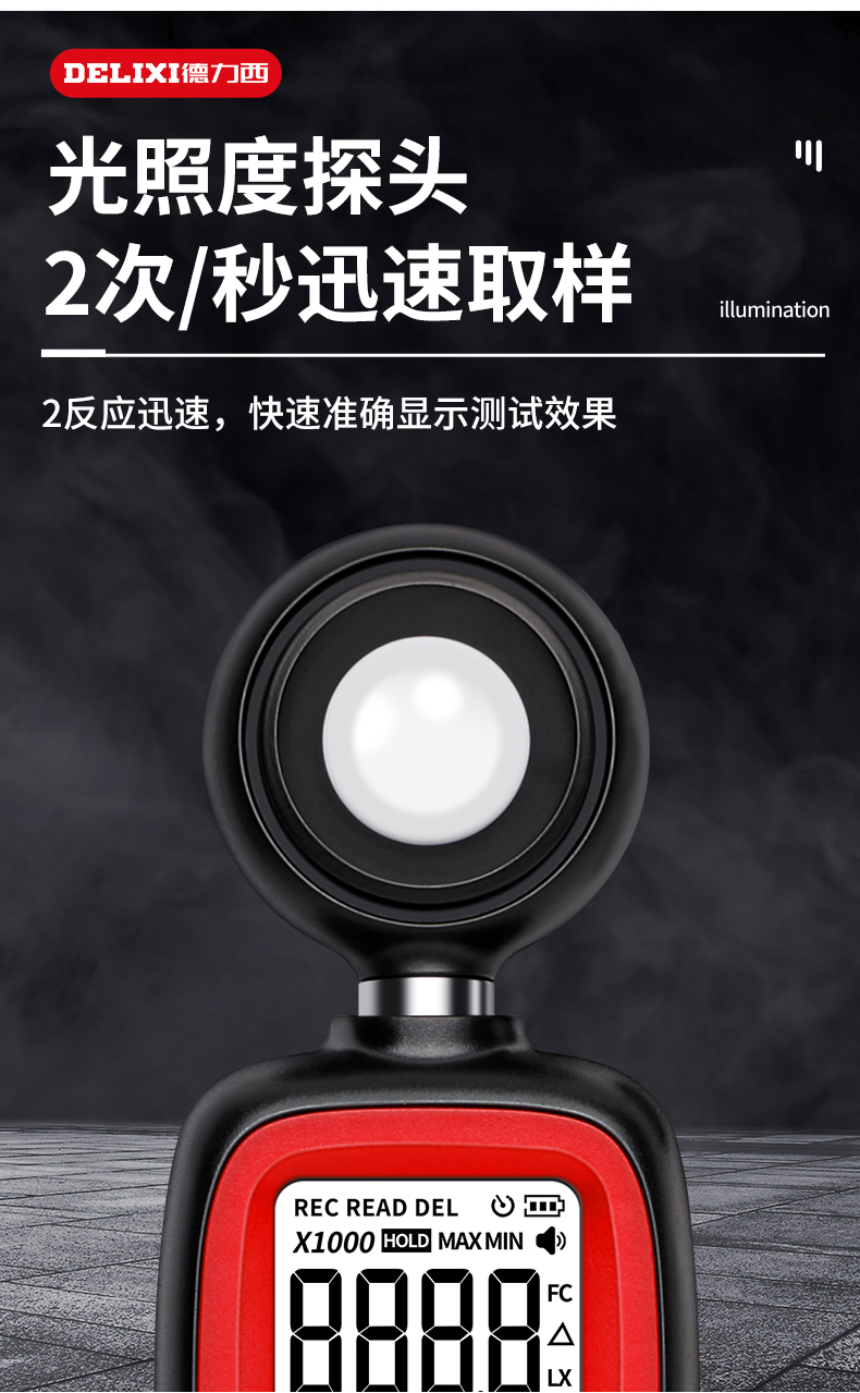 德力西光照度计高精度光照度测试仪测光仪光度计亮度测量仪器流明 照度计/超强感光/1秒2次迅速取样