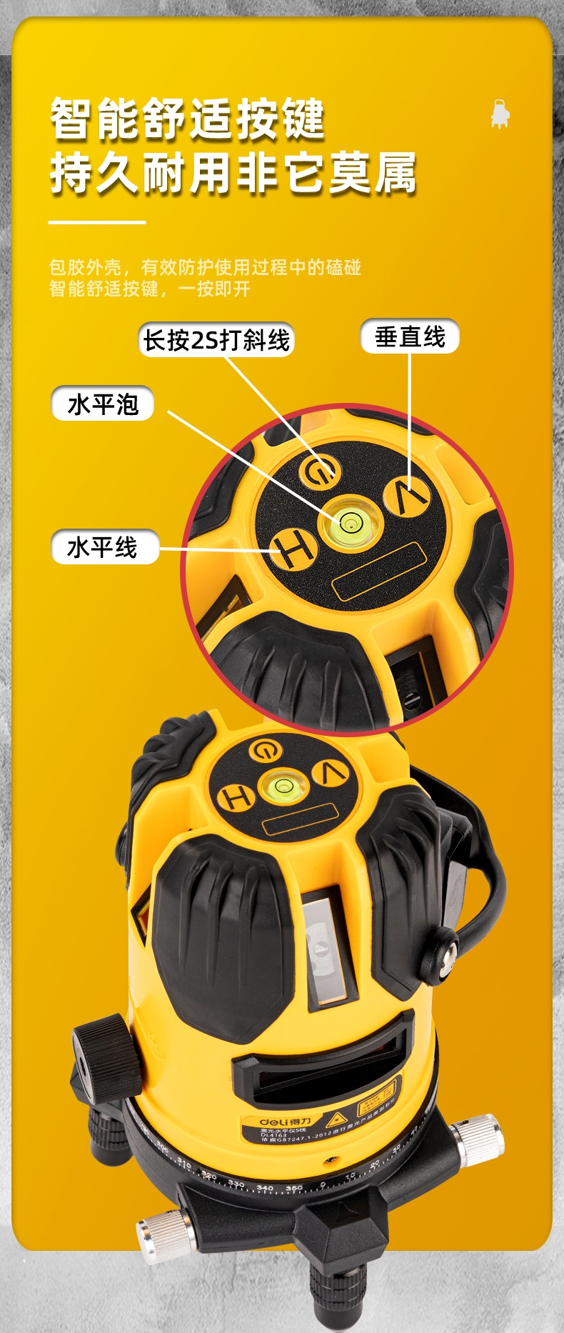得力(deli)绿光水平仪激光23512线红外线细强光小型投线仪高精度 标配款--3线特厚塑箱DL4162