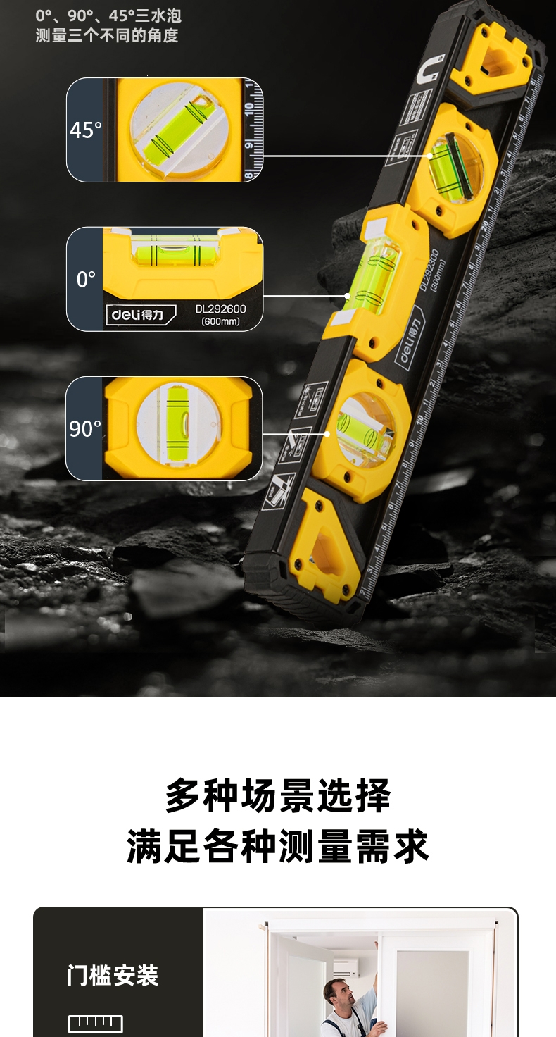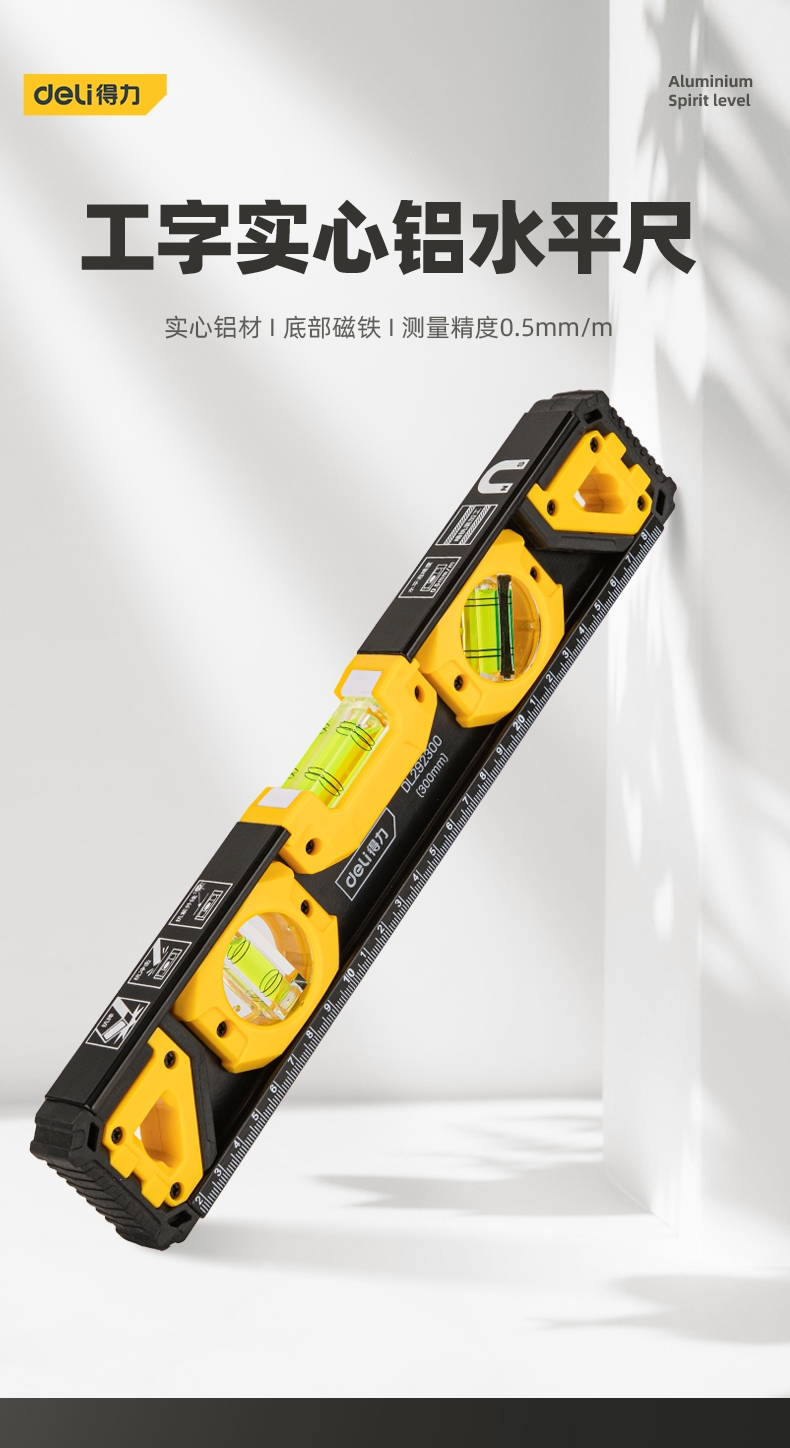 得力(deli)工字水平尺实心铝高精度测量家用强磁防摔装修平衡尺靠尺 800mm带磁工字水平尺-DL292800