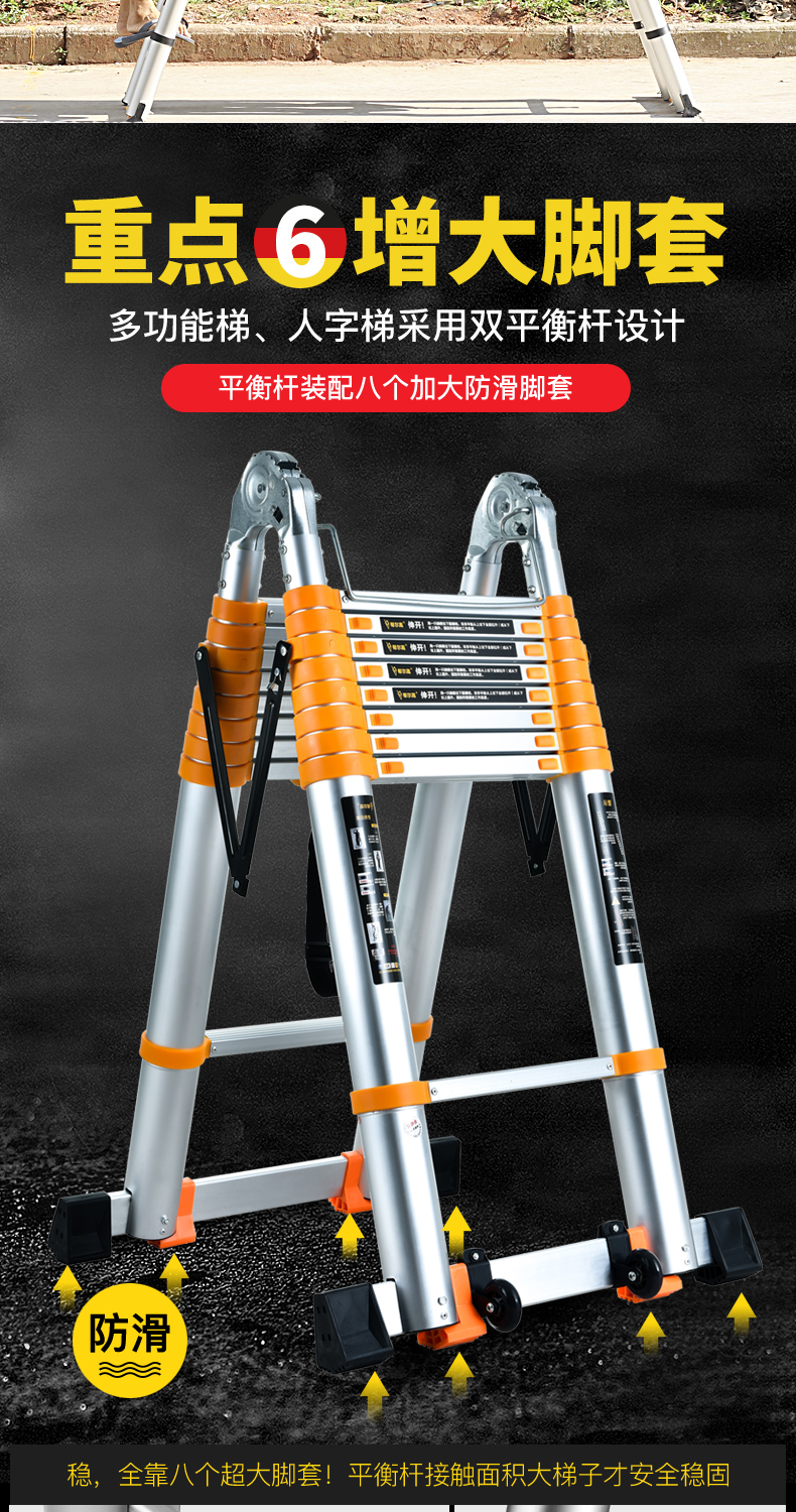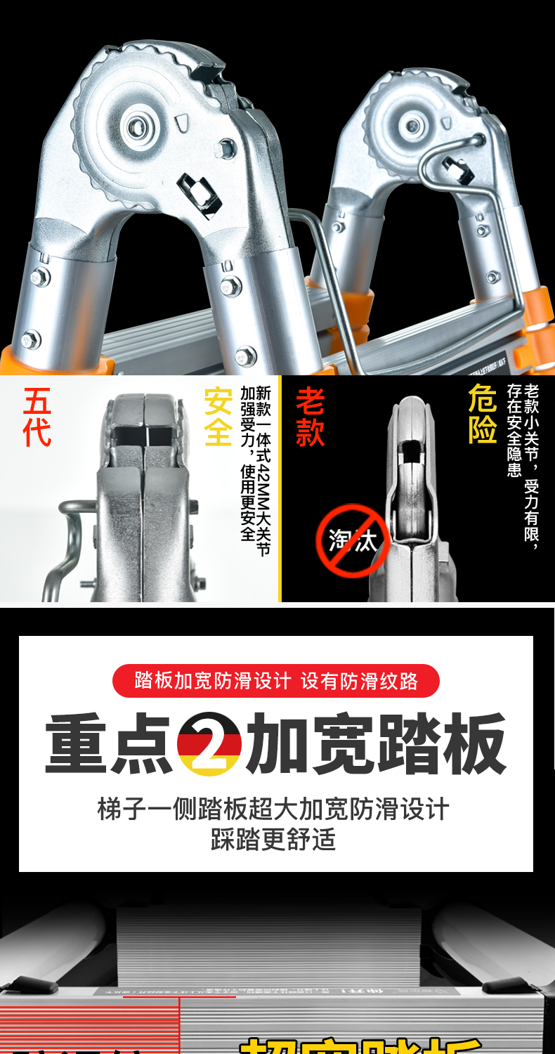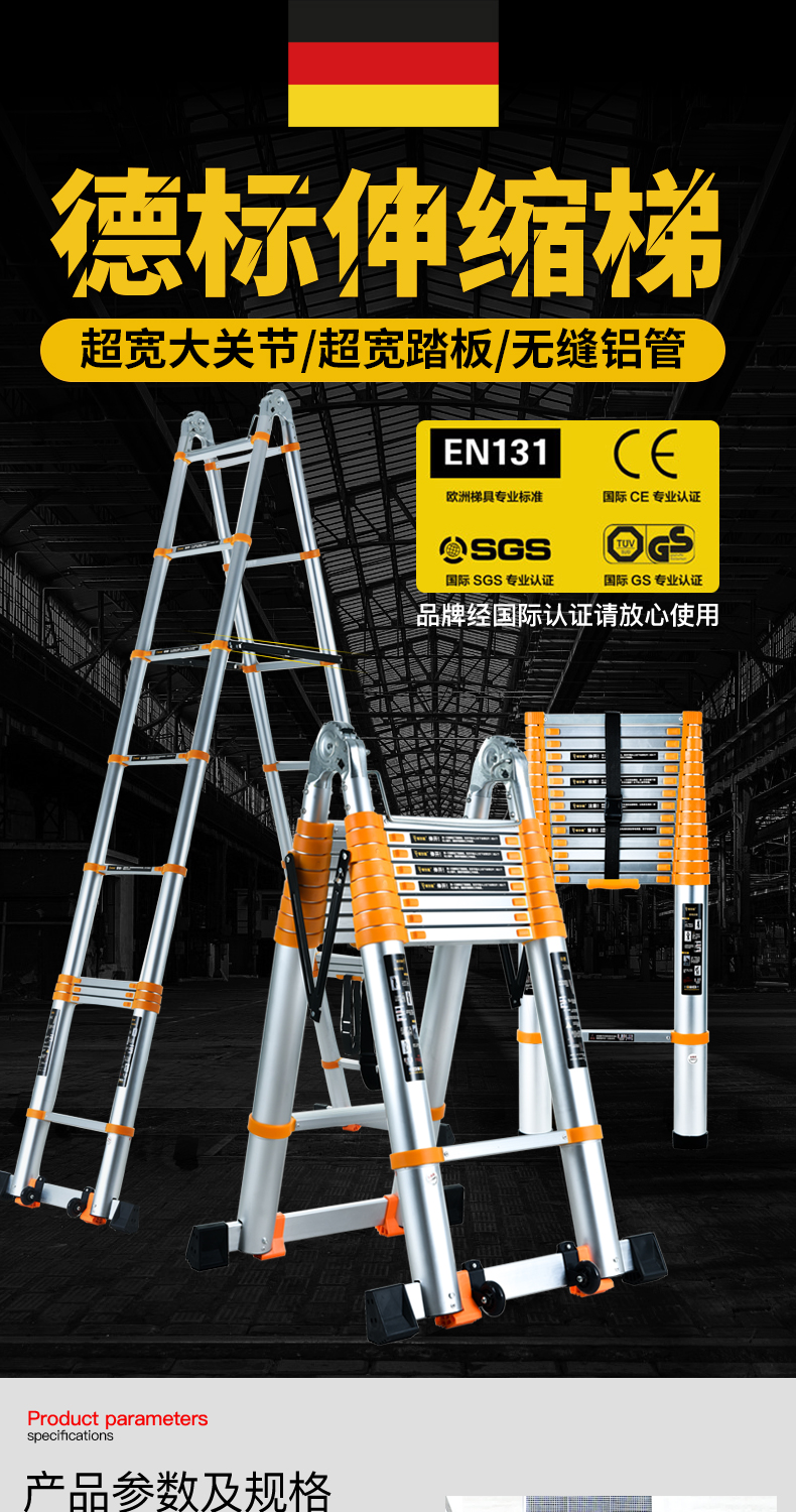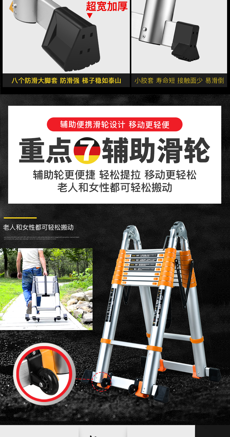 伸缩梯人字梯家用折叠梯多功能升降楼梯加厚铝合金工程梯子闪电客除尘 德标宽踏板]多功能2.5+2.5=直5米[升级无缝管]