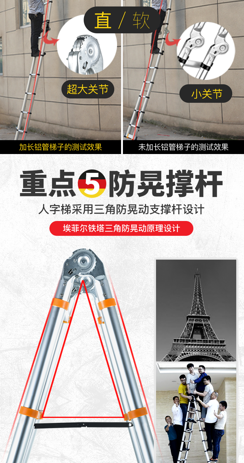 伸缩梯人字梯家用折叠梯多功能升降楼梯加厚铝合金工程梯子闪电客除尘纸 德标无缝管+宽踏板]直梯3.5米[需靠墙体使用]
