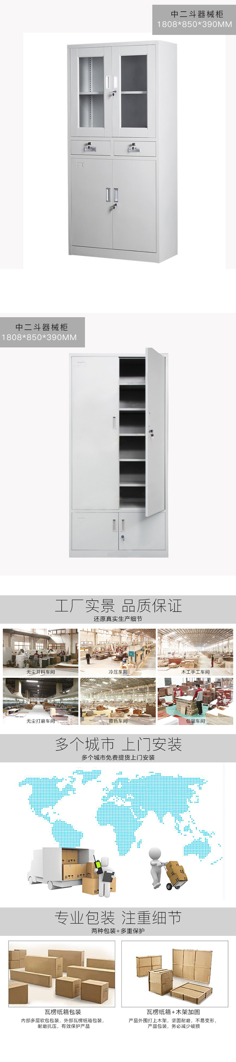 富和美(BNF)大器械文件柜铁皮柜大器械柜档案柜办公资料柜铁柜子员工柜办公柜储物柜加厚款850L*390W*1800H 银色