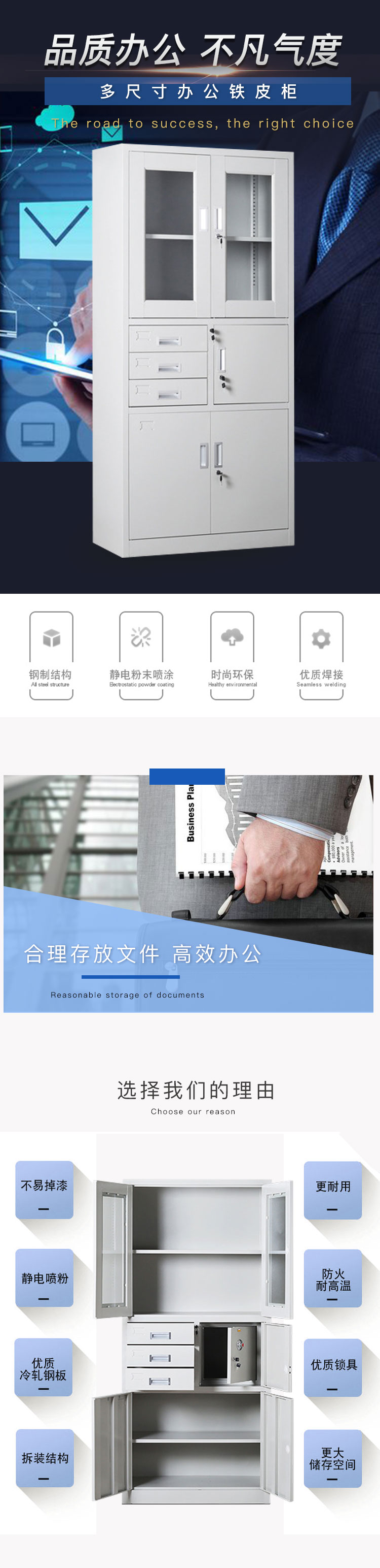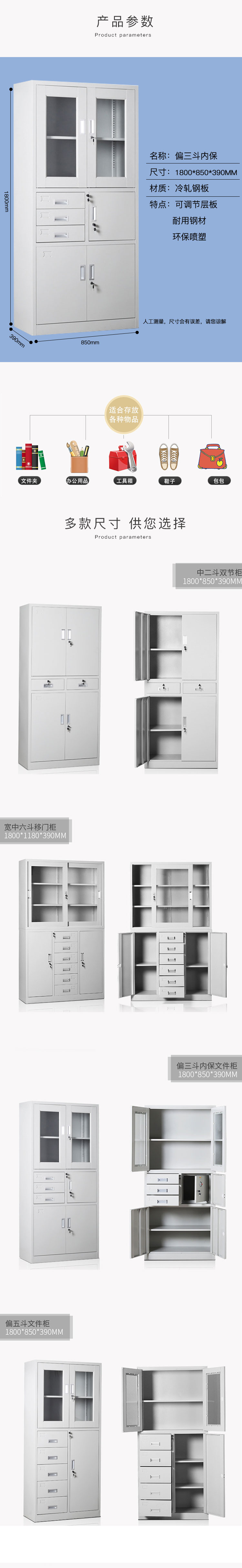 富和美偏三斗内保文件柜铁皮柜大器械柜档案柜办公资料柜铁柜子员工柜办公柜储物柜加厚款850L*390W*1800H 银色