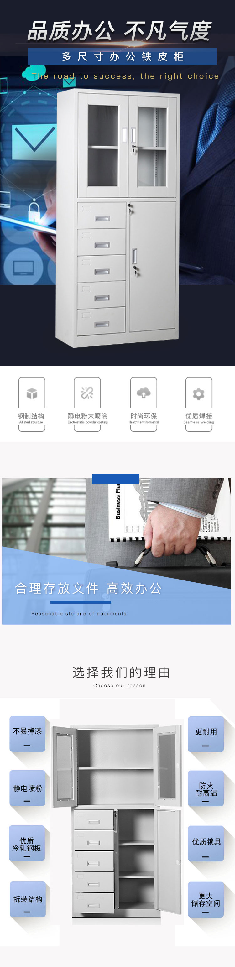 富和美(BNF)偏五斗文件柜铁皮柜大器械柜档案柜办公资料柜铁柜子员工柜办公柜储物柜加厚款850L*390W*1800H 银色