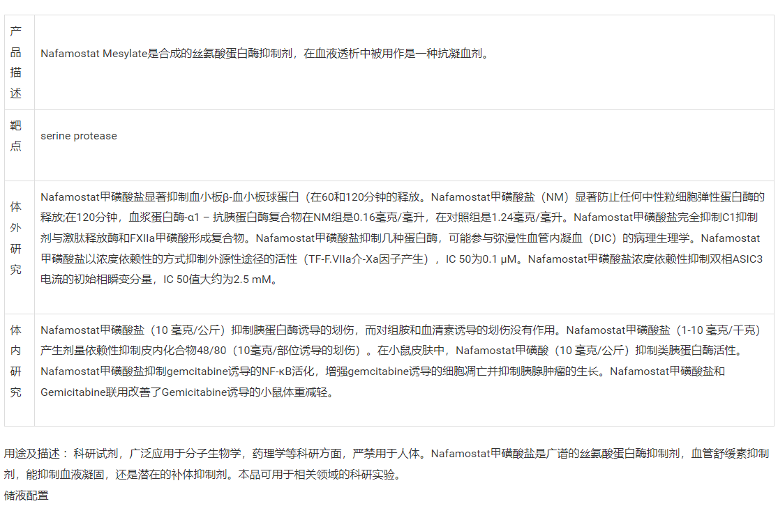 NafamostatMesylate;萘莫司他甲磺酸盐