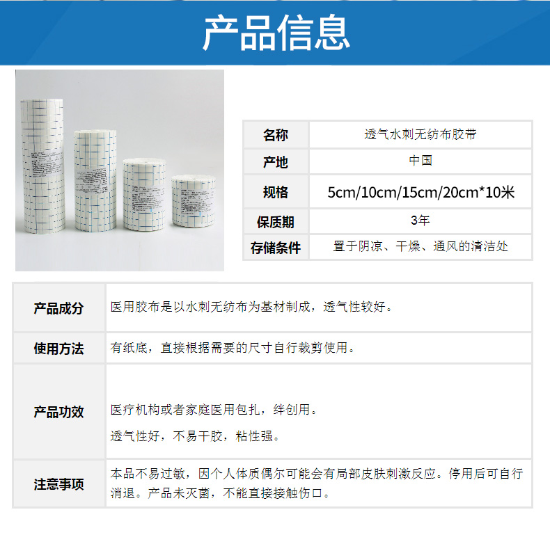 医用胶布无纺布宽胶带防水过敏透气敷料药胶贴膏药穴位固定三伏贴 ★透气胶带20*500cm/1卷