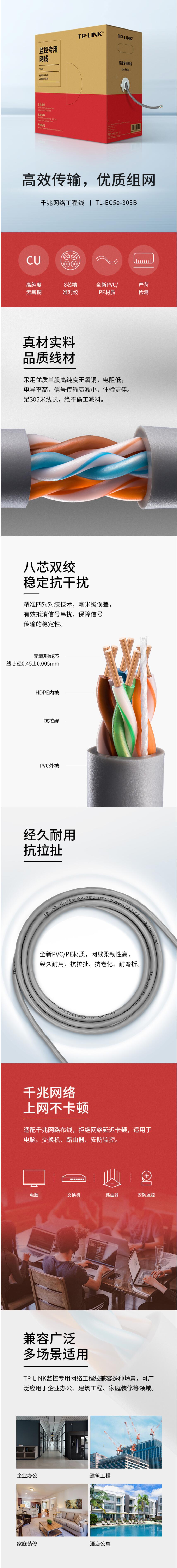 TP-LINK 超五类性能千兆网线 原装非屏蔽高速工程网线 纯铜双绞线 家装网络监控布线305米箱线EC5e-305B