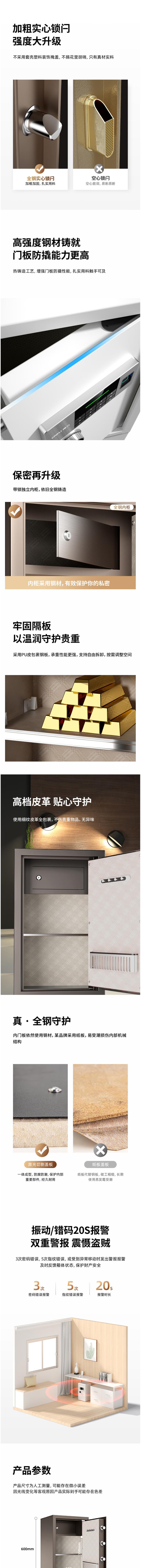 得力保险柜 家用办公指纹密码保管箱小型保密箱全钢防盗可入墙入柜保管柜保险箱 60cm钻石白 曜臻系列
