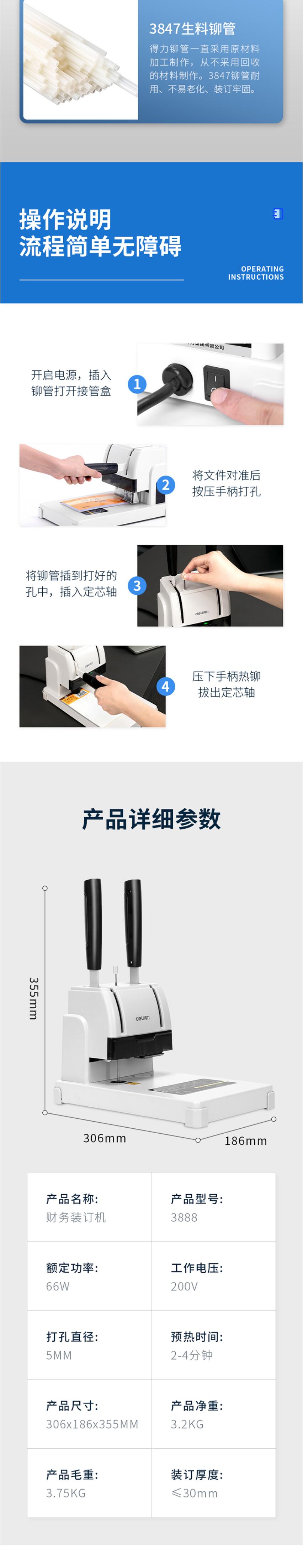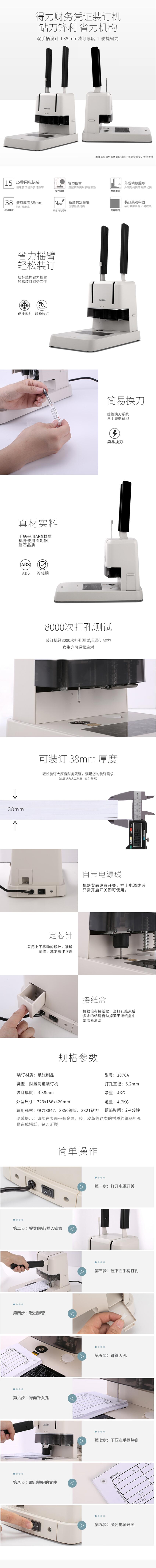 得力(deli)3876A 经典财务凭证装订机 省力型档案打孔机